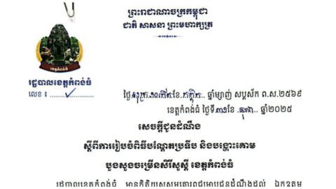 សេចក្ដីជូនដំណឹងស្ដីពីការរៀបចំពិធីបណ្ដែតប្រទីប និងបង្ហោះគោម បួងសួងចម្រើនសិរីសួស្ដី ខេត្តកំពង់ធំ