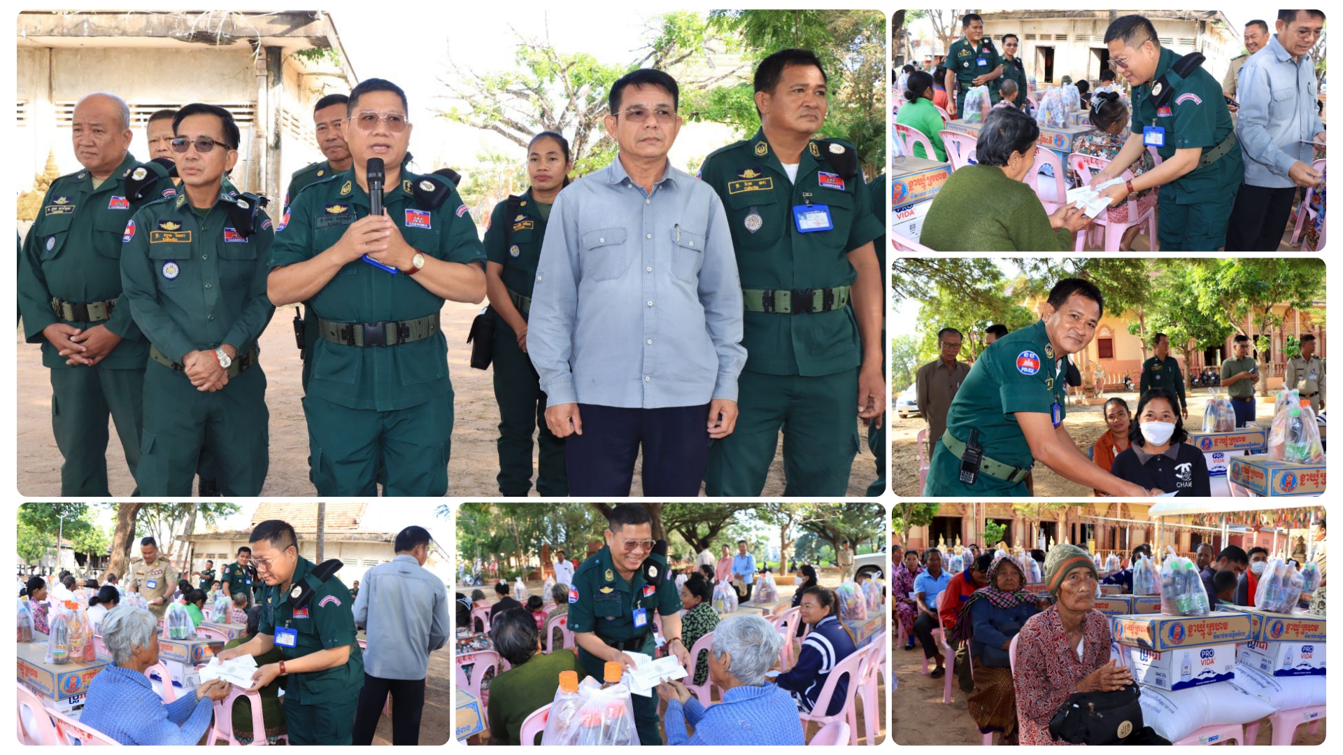 (កំពង់ធំ)÷ព្រឹកថ្ងៃទី ៨ ខែ មករា ឆ្នាំ២០២៦ លោកឧត្តមសេនីយ៍ត្រី ខេន ឈុនគ័រស្នងការរង តំណាងលោកឧត្តមសេនីយ៍ទោ ហេង សុផល ស្នងការនគរបាលខេត្ត បានដឹកនាំកងកម្លាំងចុះសាកសួរសុខទុក្ខព្រមទាំងនាំយកអំណោយឧបត្ថម្ភ ជូនជនចាស់ជរា និងប្រជាពលរដ្ឋ ដែលមានជីវភាពខ្វះខាត ស្ថិតនៅក្នុងភូមិសាស្ត្រក្រុងស្ទឹង សែន ដែលធ្វើឡើងនៅទីតាំង វត្តទេពនិម្មិត សង្កាត់ កំពង់រទេះ ក្រុង ស្ទឹងសែន ខេត្តកំពង់ធំ ។