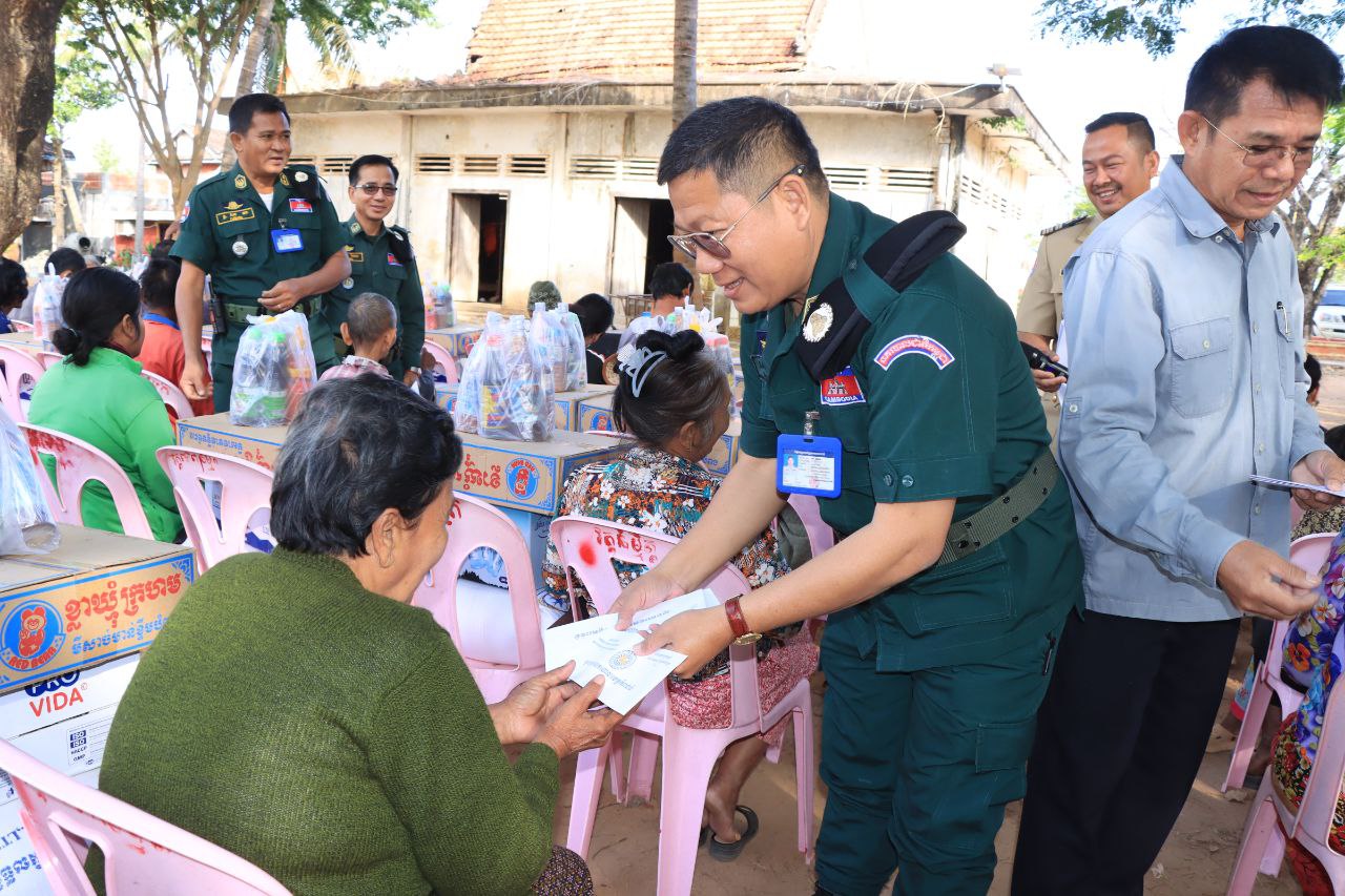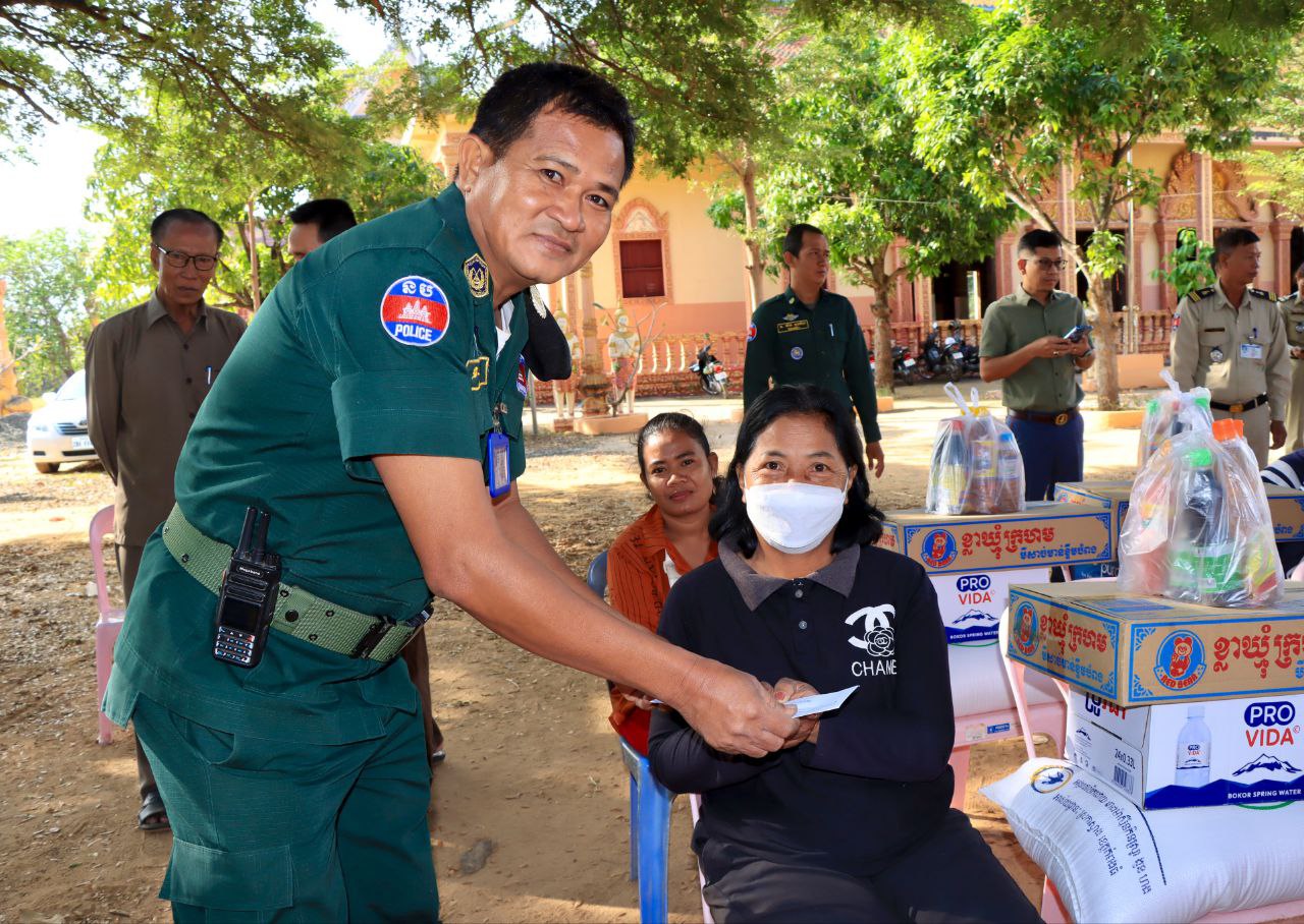 លោកស្នងការរង បានប្រគល់អំណោយ ក្នុង ០១ គ្រួសារទទួលបាន÷.អង្ករ ២៥ គីឡូក្រាម,.មីខ្លាឃ្មុំ ០១ កេស,.ទឹកបរិសុទ្ធ ០១ កេស,.ឃីតចំនួន ០១ កញ្ចប់ និងថវិកា ៥០,០០០រៀល ព្រមទាំងប្រគល់ថវិកាចំនួន ៤០០,០០០រៀល ជូនលោកចៅសង្កាត់-មេភូមិ-កម្លាំងប្រជាការពារ ដែលជាការឧបត្ថម្ភ របស់លោកឧត្តមសេនីយ៍ទោ ហេង សុផល ស្នងការនគរបាលខេត្ត ។