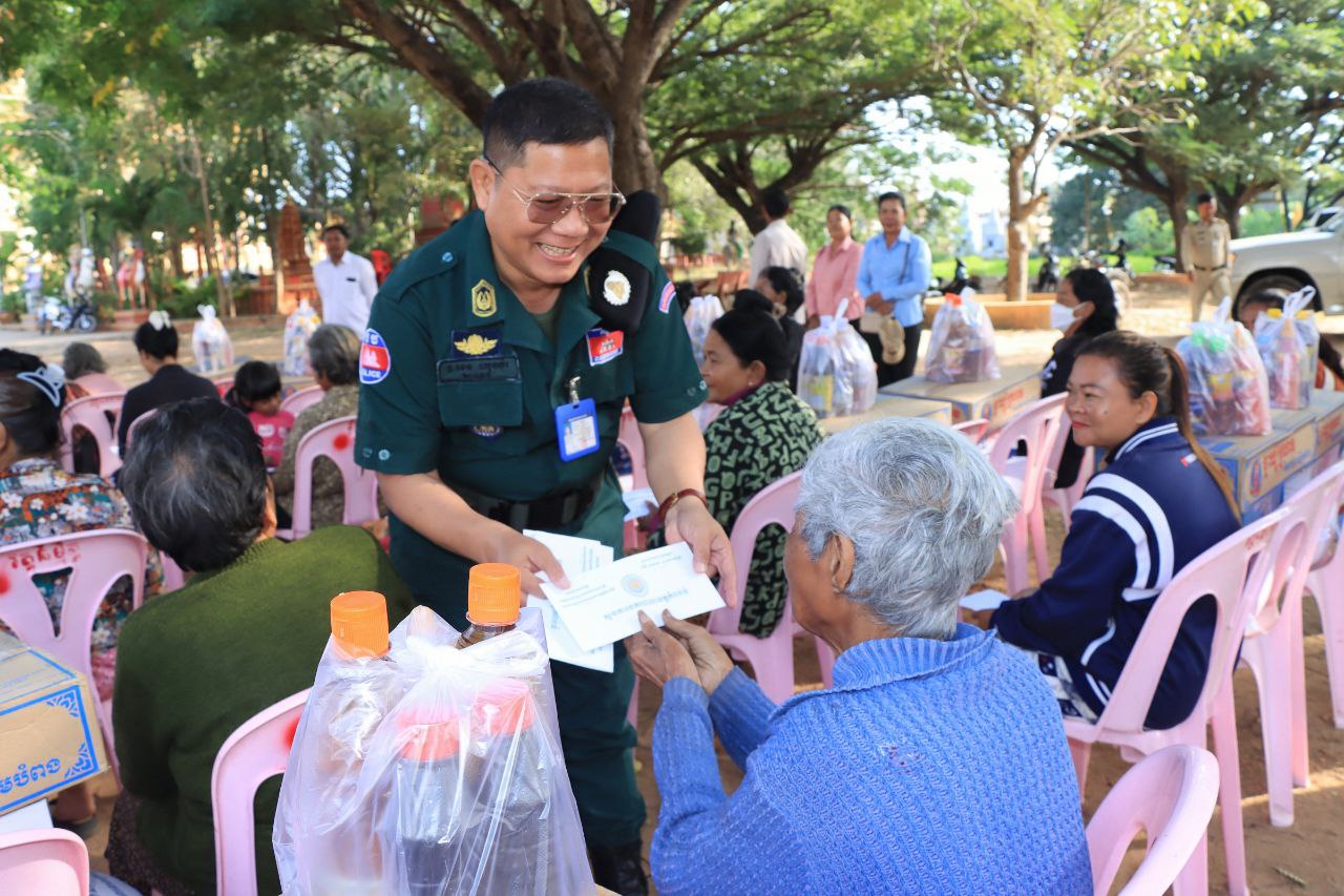 ស្នងការដ្ឋាននគរបាលខេត្តកំពង់ធំ បន្តចុះសាកសួរសុខទុក្ខ នាំយកគ្រឿងឧបភោគបរិភោគ ឧបត្ថម្ភជូនជនចាស់ជរា និងបងប្អូនប្រជាពលរដ្ឋ ដែលមានជីវភាពខ្វះខាតចំនួន ៥០ គ្រួសារ ក្នុងភូមិសាស្រ្តក្រុង ស្ទឹងសែន
