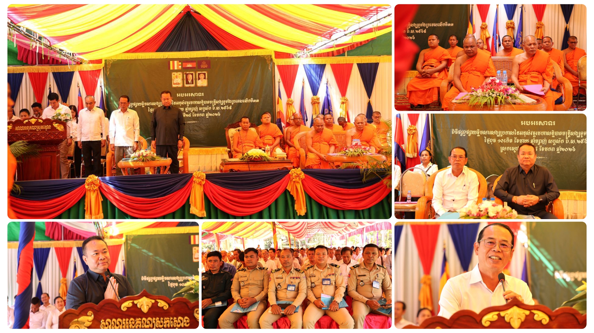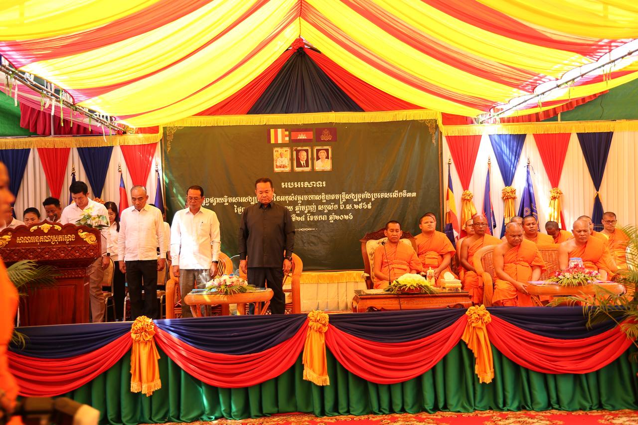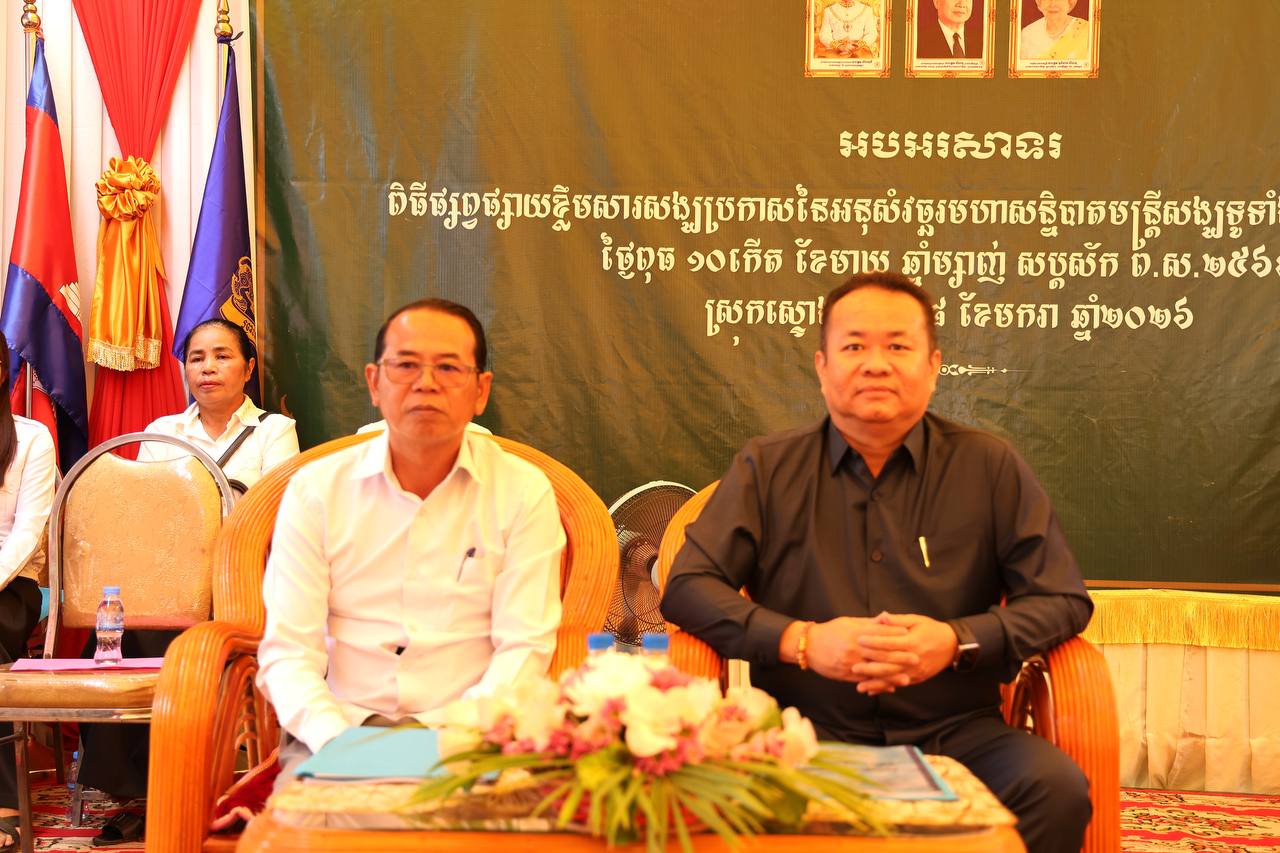 (កំពង់ធំ)÷ ព្រះទេពសត្ថា សៀង សុខ ព្រះរាជាគណៈថ្នាក់ចត្វា និងជាព្រះសត្ថាបារមី ព្រះមេគណខេត្តកំពង់ធំ លោក តាន់ តៃជ្រាន់ ប្រធានមន្ទីរធម្មការ និងសាសនាខេត្តកំពង់ធំ លោក សាយ គឹមឡម អភិបាល នៃគណៈអភិបាលស្រុកស្ទោង និមន្តអញ្ជើញ ជាអធិបតីភាពក្នុងពិធីផ្សព្វផ្សាយខ្លឹមសារសង្ឃប្រកាសនៃអនុសំវច្ឆរមហាសន្និបាតមន្ត្រីសង្ឃទូទាំងប្រទេសលើកទី៣៣ ព.ស២៥៦៩ គ.ស២០២៦ សម្រាប់សាលាអនុគណស្រុកស្ទោង ក្រោមការរៀបចំដោយ ព្រះបុណ្ណញាណ ណិប អ៊ាន ព្រះរាជាគណៈថ្នាក់កិត្តិយស ជាព្រះធម្មធរគណខេត្ត និងជាព្រះគ្រូបរិត្តកោសល អនុគណស្រុកស្ទោង ព្រមទាំងសហការី ដែលសមាសភាពចូលរួមចំនួន ៦៥៣អង្គ/នាក់ ស្ថិតក្នុងវត្តឃ្លាំងខ្មូត ឃុំប្រឡាយ ស្រុកស្ទោង ខេត្តកំពង់ធំ នារសៀលថ្ងៃពុធ ១០កើត ខែមាឃ ឆ្នាំម្សាញ់ សប្តស័ក ពុទ្ធសករាជ ២៥៦៩ ត្រូវនឹងថ្ងៃទី២៨ ខែមករា ឆ្នាំ២០២៦។