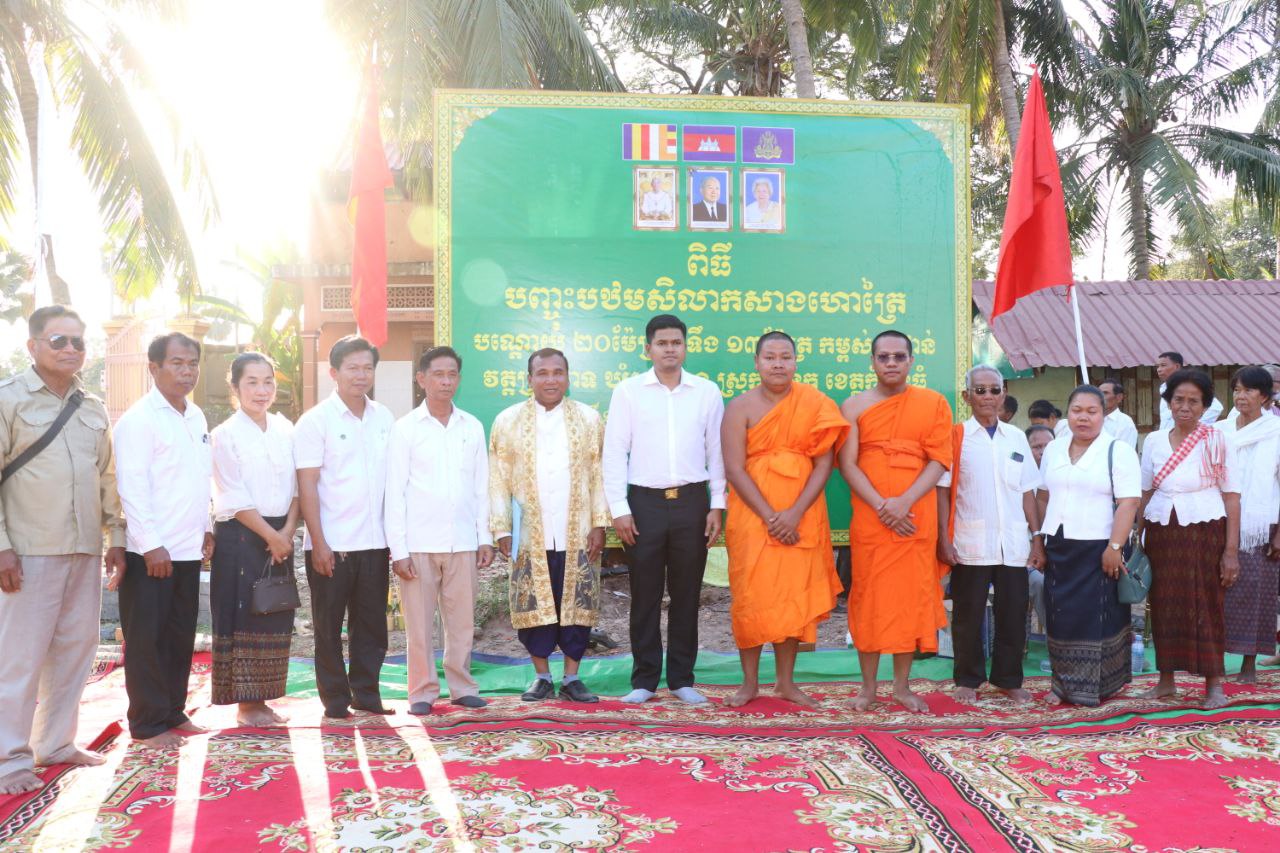 ពិធីបញ្ចុះបឋមសិលាកសាងហោត្រៃ ដែលមានបណ្តោយ ២០ម៉ែត្រ ទទឹង១៣ម៉ែត្រ និងកម្ពស់២ជាន់ វត្តប្រាសាទ ស្រុកសន្ទុក