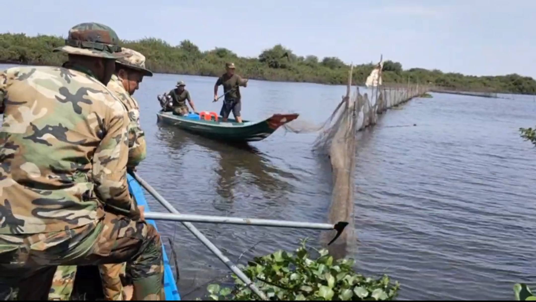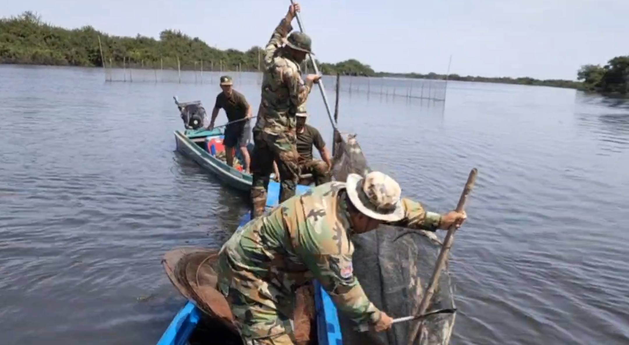 ខេត្តកំពង់ធំ៖ ឧត្តមសេនីយ៍ទោ សោម ស៊ុន មេបញ្ជាការតំបន់ប្រតិបត្តិការសឹករងកំពង់ធំ អនុប្រធានអចិន្ត្រៃយ៍ នៃគណៈកម្មការការពារ ទប់ស្កាត់ និងបង្ក្រាបបទល្មើសធនធានធម្មជាតិនៅក្នុងភូមិសាស្ត្រខេត្តកំពង់ធំ បានបញ្ជាក់ថា៖ ទោះបីមមាញឹកក្នុងភារកិច្ចការពារបូររណភាពទឹកដី និងការបង្ក្រាបបទល្មើសការលួចកាប់ទន្ទ្រានព្រៃឈើ យកដីរបស់រដ្ឋធ្វើជាកម្មសិទ្ធិក្នុងរដូវប្រាំងនេះ យ៉ាងណាក្តី តែការបង្ក្រាបបទល្មើសនេសាទខុសច្បាប់ នៅតែធ្វើសកម្មភាពដូចភ្លៀងរលឹម មិនមានការដកថយឡើយ។ ជាក់ស្ដែងនៅព្រឹកថ្ងៃទី ១៨ ខែកុម្ភៈ ឆ្នាំ២០២៦នេះ កងកម្លាំងនៃបញ្ជាការដ្ឋានតំបន់ប្រតិបត្តិការសឹករងកំពង់ធំ យោធភូមិភាគទី ៤ ដឹកនាំដោយលោកអនុសេនីយ៍ឯក ប៊ុត ទ្រី នាយទាហានប្រចាំការនៅទីបញ្ជាការស្រាល នៅឃុំពាមបាង ស្រុកស្ទោង ខេត្តកំពង់ធំ បានបន្តដឹកនាំកងកម្លាំងទៅបង្ក្រាបឧបករណ៍នេសាទខុសច្បាប់ ដាក់កាត់ទទឹងព្រែក នៅតំបន់ព្រែកឆេះកែវ ក្នុងឃុំពាមបាង ស្រុកស្ទោង ដោយបានបំផ្លាញចោលឧបករណ៍នេសាទខុសច្បាប់នៅនឹងកន្លែង មានសាច់អួនក្រឡាញ់ញឹកចំនួន ៤របាំង ដែលមានប្រវែង ៣៧៥ ម៉ែត្រ ឡុកសាច់អួនចំនួន ៤ឡុក លបលូ ចំនួន ៤មាត់ ចាក់លែងត្រីចម្រុះប្រមាណជាង ១៩គីឡូក្រាម និងបំផ្លាញចោលនូវឧបករណ៍នេសាទខុសច្បាប់មួយចំនួនទៀត ។