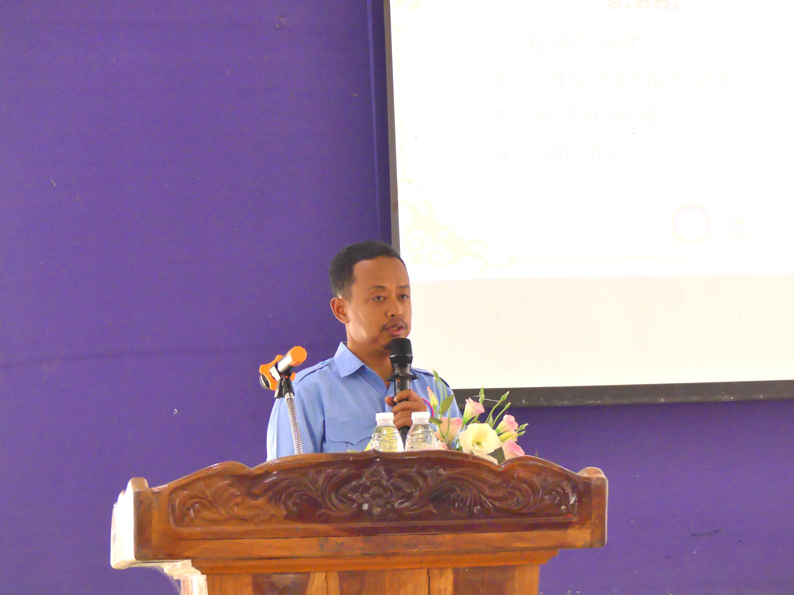 • លោក ប៉ែន សុផាត អនុប្រធាន ស.ស.យ.ក. ស្រុក៖ បានរាយការណ៍យ៉ាងលម្អិតអំពីសកម្មភាពចុះជួយសង្គម រួមមានការសាងសង់ផ្ទះសប្បុរសធម៌ អណ្ដូងទឹកស្អាត ការជួយគ្រួសារក្រីក្រ ចាស់ជរា កុមារកំព្រា យុទ្ធនាការសំអាតបរិស្ថាន និងជាពិសេសគឺជោគជ័យនៃព្រឹត្តិការណ៍ «ជិះកង់ដើម្បីទេសចរណ៍» នៅតំបន់ប្រាសាទសំបូរព្រៃគុក។