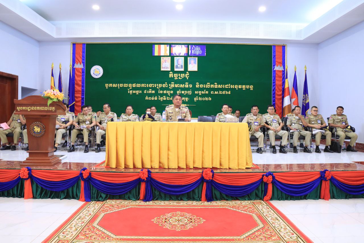 នាយឧត្ដមសេនីយ៍ ស ថេត អគ្គស្នងការនគរបាលជាតិ ព្រឹកថ្ងៃទី ២៤ ខែ កុម្ភៈ ឆ្នាំ២០២៦ លោកឧត្តមសេនីយ៍ទោ ហេង សុផល ស្នងការនគរបាលខេត្ត បានដឹកនាំកិច្ចប្រជុំបូកសរុបលទ្ធផលការងារប្រចាំ ត្រីមាសទី១ និងលើកទិសដៅអនុវត្តបន្ត ដល់កងកម្លាំងនៅសាលប្រជុំស្នងការដ្ឋាននគរបាលខេត្ត ។
