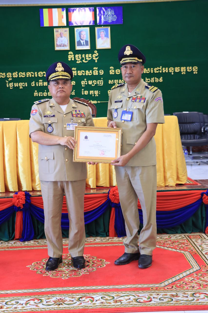 ជាកិច្ចចុងក្រោយ លោកស្នងការនគរបាលខេត្ត បានប្រគល់លិខិតសរសើរ ដល់ថ្នាក់ដឹកនាំ និងកងកម្លាំងទូទាំងខេត្ត ដែលមានស្មារតីក្នុងការអនុវត្តតួនាទី ភារកិច្ច នាពេលកន្លងមក ចំនួន ១៤៣ រូប ៕អត្ថបទស្នងការដ្ឋាននគរបាលខេត្ត -ពិនិត្យដោយអ៊ុមញឹប។