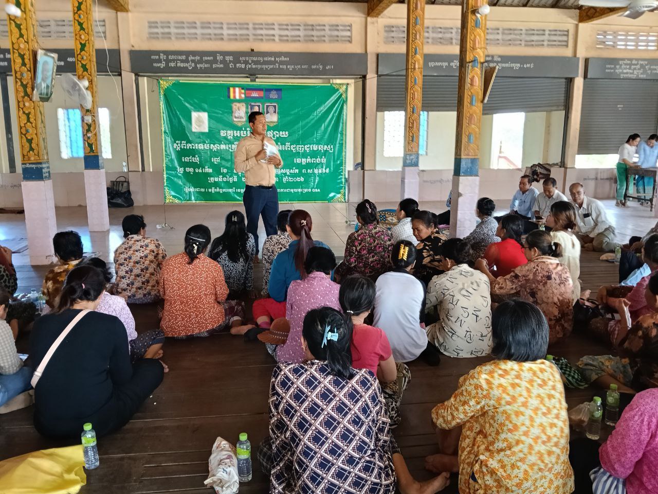 (កំពង់ធំ)÷ នៅថ្ងៃទី២ខែមិនា ឆ្នាំ២០២៦មន្ទីរកិច្ចការនារីខេត្តកំពង់ធំ បានសហការជាមួយគម្រោង QSA បេីកវគ្គអប់រំផ្សព្វផ្សាយស្ដីពីការទប់ស្កាត់គ្រឿងញៀនក្រោមអធិបតីភាព លោកស្រី ស៊ិន ស៊ីផាន ប្រធានមន្ទីរកិច្ចការនារី អញ្ជើញចូលរួមក្នុងឱកាសនោះផងដែររួមមានៈ លោកស្រីប្រធាន,មន្រ្តីមន្ទីរកិច្ចការនារីខេត្ត ,អភិបាលរងនៃគណៈអភិបាលស្រុក, ប្រធានការិយាល័យសង្គមកិច្ច និងសុខុមាលភាពសង្គមស្រុក ក្រុមប្រឹក្សាឃុំ មេភូមិ អនុភូមិ សមាជិកភូមិ និងប្រជាពលរដ្ឋ ក្នុងឃុំ បានអញ្ជើញចូលរួមវគ្គអប់រំផ្សព្វផ្សាយស្ដីពីការទប់ស្កាត់គ្រឿងញៀននិងជួញដូរមនុស្សនៅ ឃុំព្នៅស្រុកសន្ទុកខេត្តកំពង់ធំ ដែលមានអ្នកចូលរួមសរុប ១០០នាក់ ស្រី៦៨នាក់ ។