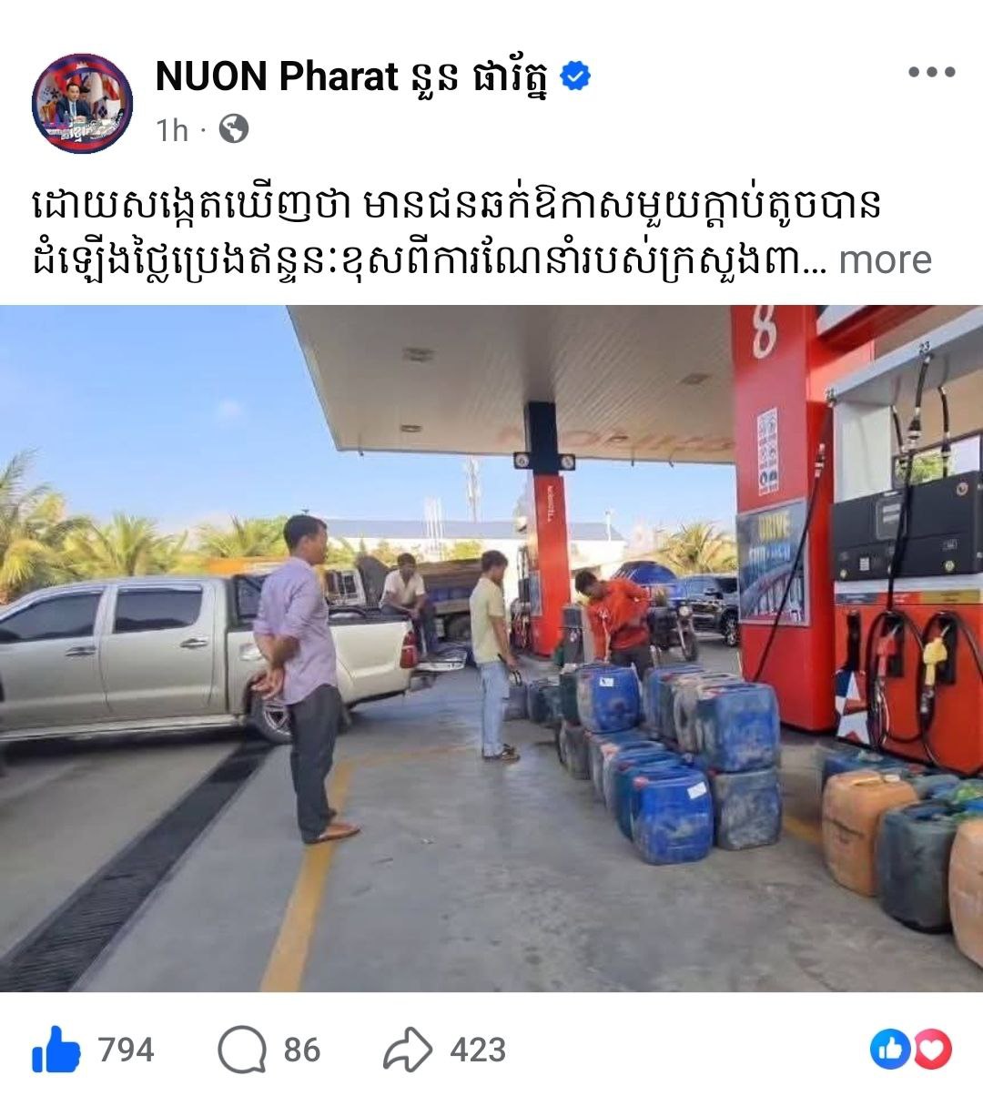 – ទី២. យកចិត្តទុកដាក់លើតម្លៃប្រេងដែលកំណត់ដោយស្ថានីយមួយចំនួន ក្នុងករណីរកឃើញថាស្ថានីយប្រេងឥន្ទនៈណាមួយបានកំណត់តម្លៃខុសពីការណែនាំរបស់ក្រសួងពាណិជ្ជកម្ម ម្ចាស់ស្ថានីយប្រេងឥន្ទនៈនោះនឹងត្រូវទទួលការព្រមាន និងអាចឈានទៅរកការបិទស្ថានីយប្រេងឥន្ទនៈនោះ ជាអចិន្ត្រៃយ៍ផងដែរ។