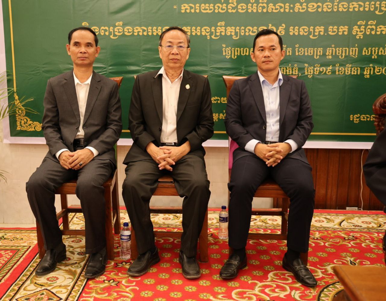(កំពង់ធំ)៖ នាព្រឹកថ្ងៃទី១៩ ខែមីនា ឆ្នាំ២០២៦នេះ ក្រសួងផែនការ សហការជាមួយមន្ទីរ ផែនការខេត្ត បានបើកសិក្ខាសាលាផ្សព្វផ្សាយ ស្តីពីការលើកកម្ពស់អាហារូបត្ថម្ភនៅកម្ពុជា ក្រោមប្រធានបទ (ការយល់ដឹងអំពីសារៈសំខាន់ ការប្រើប្រាស់អំបិលអ៊ីយ៉ូង និង ពង្រឹងការអនុវត្ត អនុក្រឹត្យលេខ ៦៩ អនក្រ.បក ស្តីពីការគ្រប់គ្រងកាធ្វើអាជីវ កម្មអំបិលអ៊ីយ៉ូដ ក្រោមវត្តមានរបស់ ឯកឧត្តម ប៉ាន ប៊ុនធឿន រដ្ឋលេខាធិការក្រសួងផែនការ និង ឯកឧត្តម ហ៊ីម លីម៉េង អភិបាលរងខេត្តតំណាងឯកឧត្តម នួនផារ័ត្ន អភិបាលនៃគណៈអភិបាលខេត្តកំពង់ធំ ដោយមានការចូលរួមពីថ្នាក់ដឹកនាំមន្ទីរ អង្គភាព និង មន្ត្រីក្រុង សង្កាត់ និង បងប្អូនអាជីវករ ចូលរួមផងដែរ ។