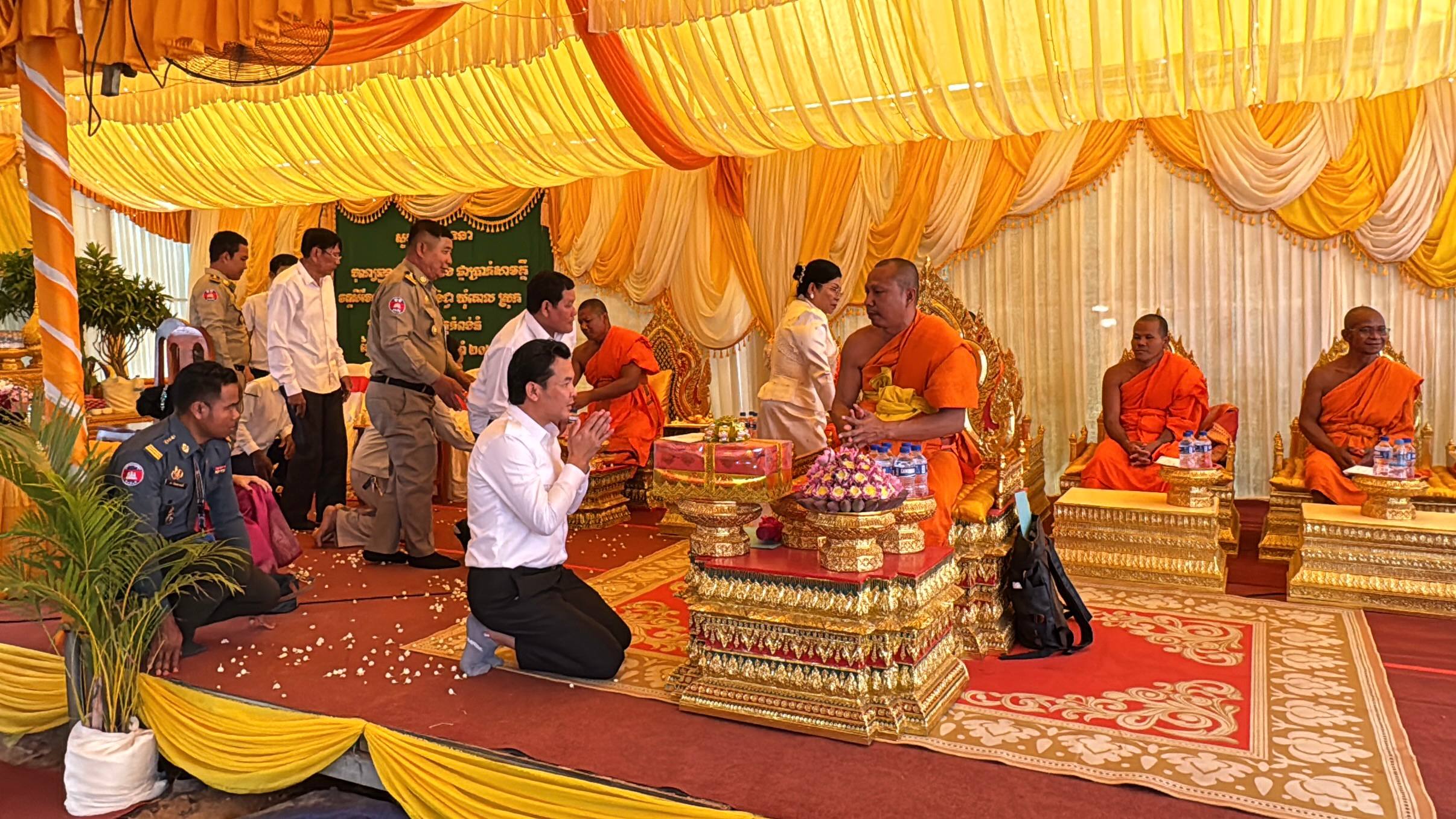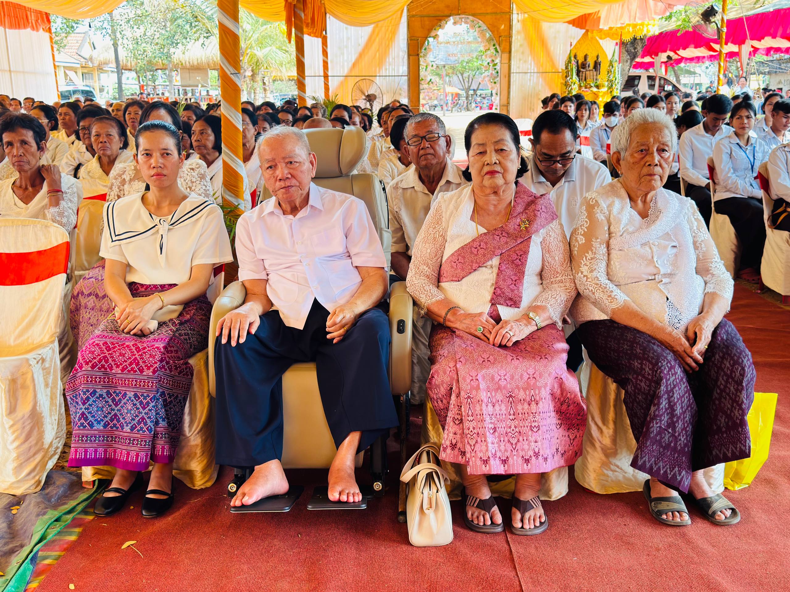 មានប្រសាសន៍ក្នុងពិធីនោះលោក ឃីម សុខឃាង បានថ្លែងអំណរគុណយ៉ាងជ្រាលជ្រៅចំពោះសប្បុរសជន ជាពិសេសឧបាសិកា ហេង វណ្ណថា ដែលបានលះបង់ថវិកាយ៉ាងច្រើនសន្ធឹកសន្ធាប់ ដើម្បីកសាងមហាកុដិនេះចេញជារូបរាងឡើង។ បន្ថែមពីនេះ លោកអភិបាលស្រុកក៏បានលើកឡើងពីការរីកចម្រើនរបស់ប្រទេសជាតិថា៖«ក្រោមការដឹកនាំដ៏ឈ្លាសវៃរបស់ សម្តេចមហាបវរធិបតី ហ៊ុន ម៉ាណែត នាយករដ្ឋមន្ត្រី នៃព្រះរាជាណាចក្រកម្ពុជា ស្រុកប្រាសាទសំបូររបស់យើងទទួលបានសមិទ្ធផលថ្មីៗជាច្រើន រួមមាន៖ ស្ពាន ថ្នល់ មណ្ឌលសុខភាព សាលារៀន បណ្ណាល័យ ប្រព័ន្ធធារាសាស្ត្រ និងបណ្តាញអគ្គិសនី រួមនឹងហេដ្ឋារចនាសម្ព័ន្ធជាច្រើនទៀត ដែលកំពុងបម្រើដល់ជីវភាពរស់នៅរបស់បងប្អូនប្រជាពលរដ្ឋ។»