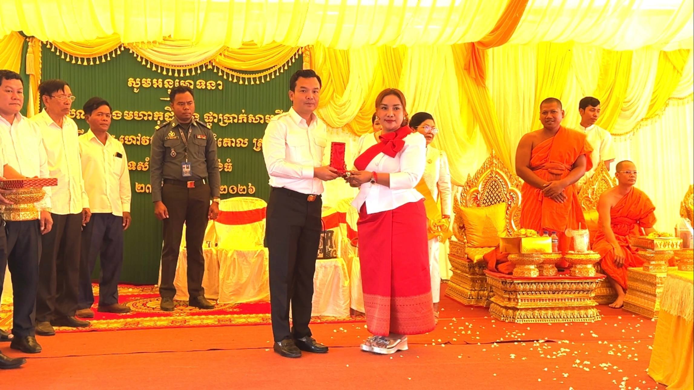 (កំពង់ធំ)៖ លោក ឃីម សុខឃាង អភិបាល នៃគណៈអភិបាលស្រុកប្រាសាទសំបូរ បានអញ្ជើញជាអធិបតីភាពក្នុងពិធីកាត់ខ្សែបូសម្ពោធឆ្លងមហាកុដិព្រះចៅអធិការ ស្ថិតក្នុងវត្តសិរីមង្គល ឃុំគោល ស្រុកប្រាសាទសំបូរ ខេត្តកំពង់ធំ នៅព្រឹកថ្ងៃទី២៣ ខែមីនា ឆ្នាំ២០២៦ នេះ ។
