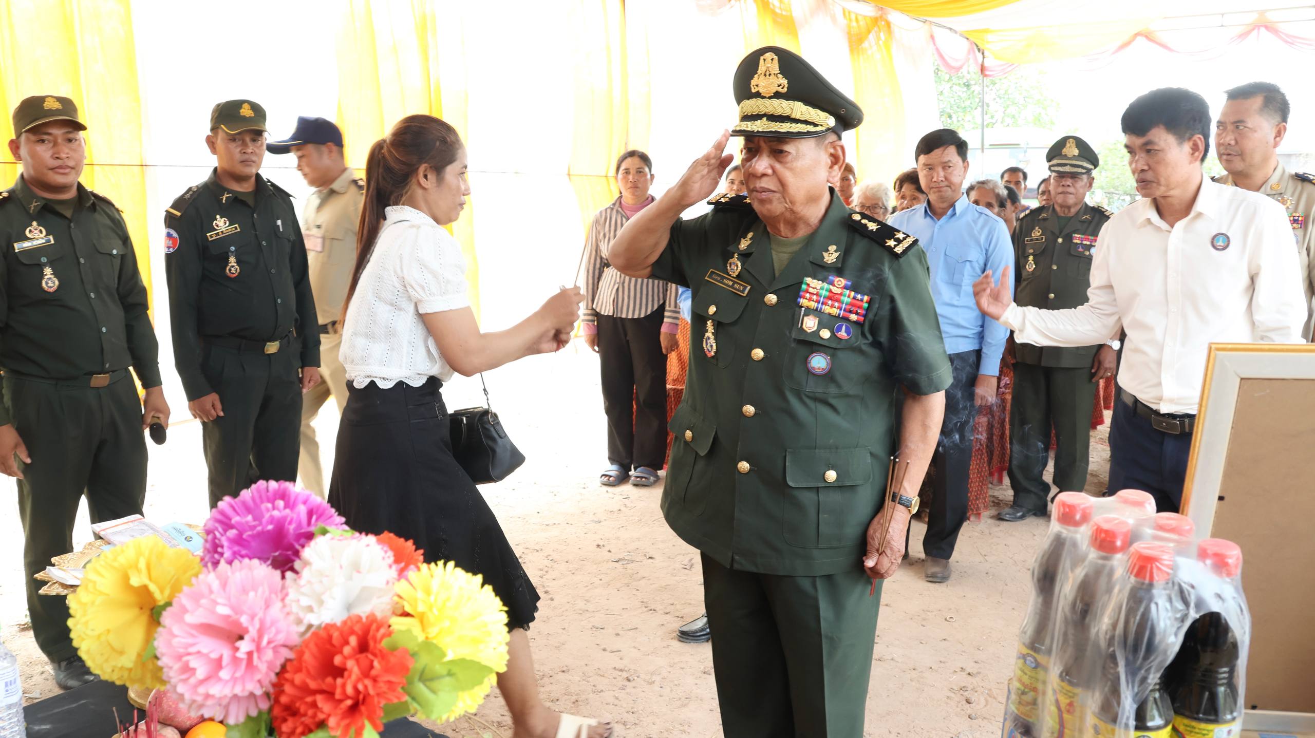 ឧត្ដមសេនីយ៍ទោ សោម ស៊ុន តំណាង​ឯកឧត្តម​នួន​ ផារ័ត្ន​ នាំយកថវិកាបេឡាមរណសង្គ្រោះ និងអំណោយដ៏ថ្លៃថ្លារបស់សម្តេចធិបតី ហ៊ុន ម៉ាណែត ទៅឧបត្ថម្ភជូនក្រុមគ្រួសារសពអតីតយុទ្ធជន សោធន៍​និវត្តន៏​ នៅស្រុកសណ្ដាន់ ខេត្តកំពង់ធំ