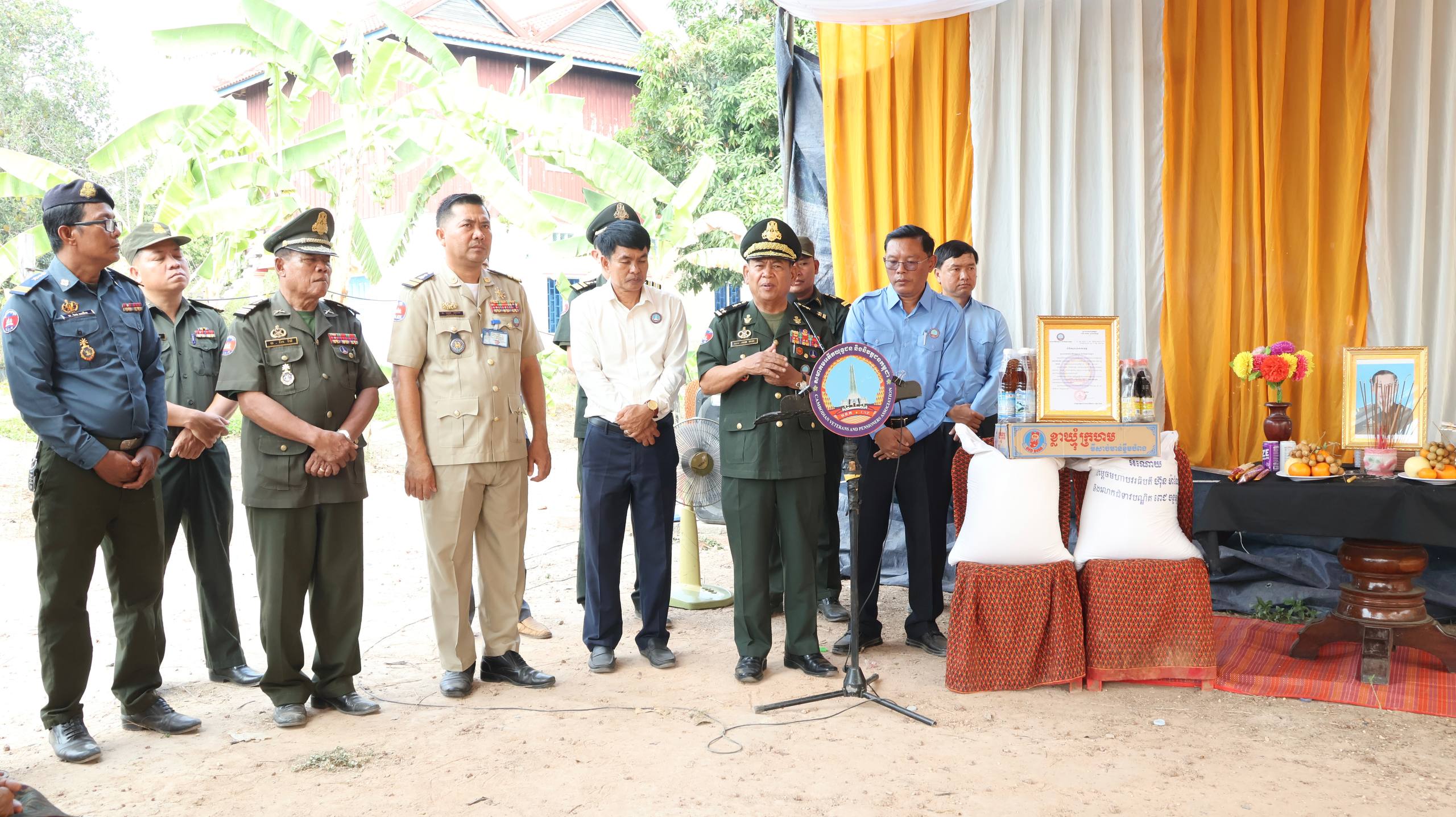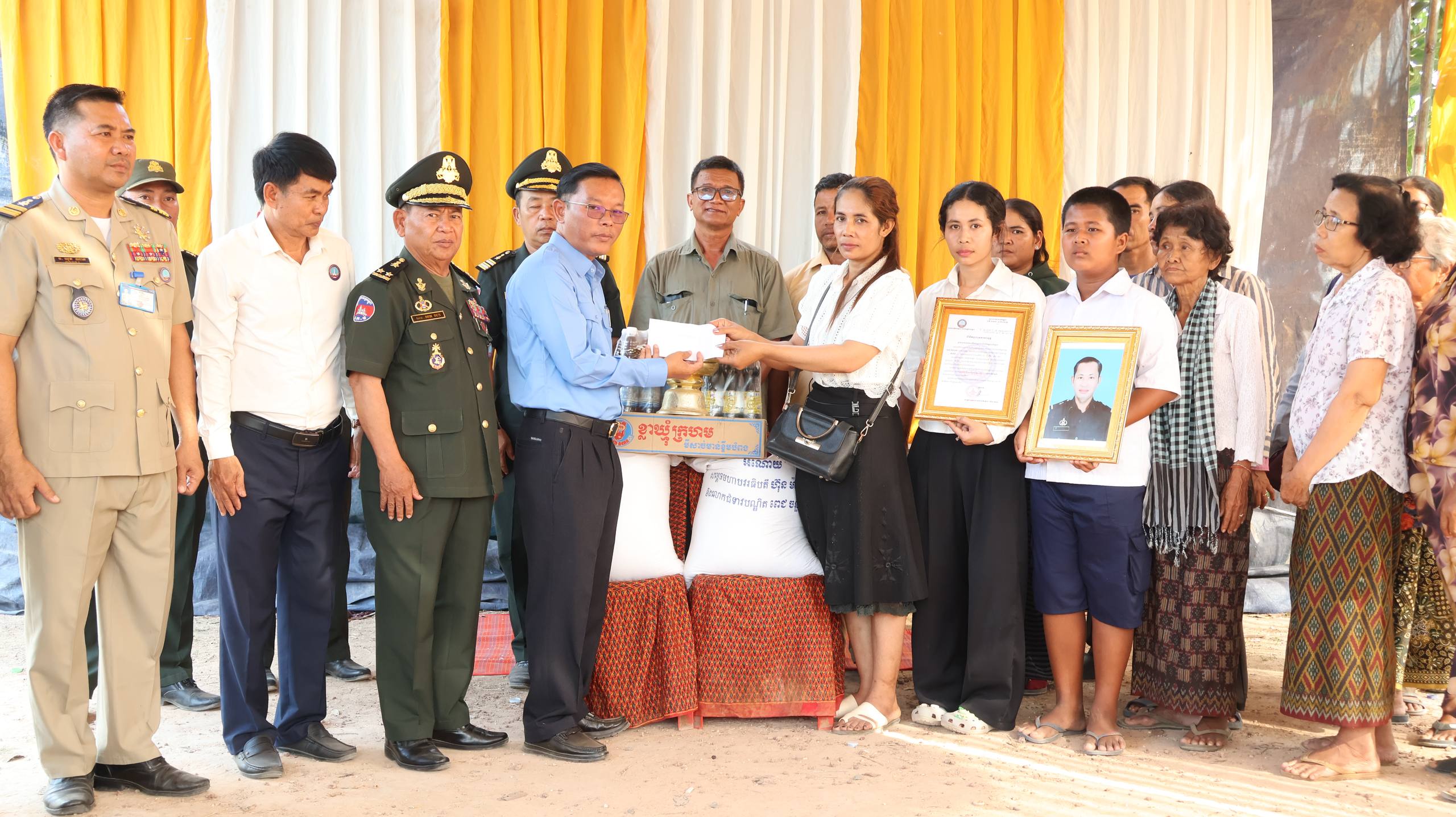 ខេត្តកំពង់ធំ៖ នៅរសៀលថ្ងៃទី០២ ខែមេសា ឆ្នាំ២០២៦ ឧត្ដមសេនីយ៍ទោ សោម ស៊ុន មេបញ្ជាការតំបន់ប្រតិបត្តិការសឹករង អនុប្រធានប្រចាំការ និងជាប្រធានលេខាធិការដ្ឋាន នៃគណៈកម្មាធិការសមាគមអតីតយុទ្ធជន និងនិវត្តជនកម្ពុជា ខេត្តកំពង់ធំ តំណាងឯកឧត្ដម នួន ផារ័ត្ន អភិបាលខេត្ត ប្រធានគណៈកម្មាធិការសមាគមអតីតយុទ្ធជន និងនិវត្តជនកម្ពុជា ខេត្តកំពង់ធំ អមដំណើរដោយលោក ជួន សិលាវិត ប្រធានសាខាមូលនិធិជាតិជំនួយសង្គម អនុប្រធានសមាគមអតីតយុទ្ធជន និងនិវត្តជនកម្ពុជា ខេត្តកំពង់ធំ និង​លោក ​សុិន​ វណ្ណ​វុឌ្ឍ​ អភិបាល​ស្រុក​ ប្រធាន​សមាគមអតីតយុទ្ធជន និងនិវត្តជនកម្ពុជា ស្រុក​សណ្តាន់​ បាននាំយកថវិកាបេឡាមរណៈសង្គ្រោះ ទៅប្រគល់ជូនក្រុមគ្រួសារសពអតីតយុទ្ធជនសោធន៍​និវត្តន៏​ និងគោរពវិញ្ញាណក្ខន្ធលោក អនុសេនីយ៍ត្រី ម៉ាក់ បូរ៉ន អាយុ ៤៧ឆ្នាំ ដែលបានទទួលមរណភាពដោយរោគាពាធនាពេលថ្មីៗកន្លងទៅនេះ ។