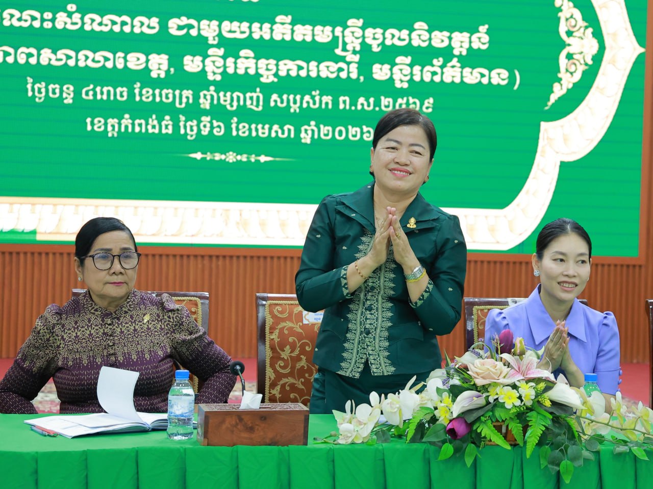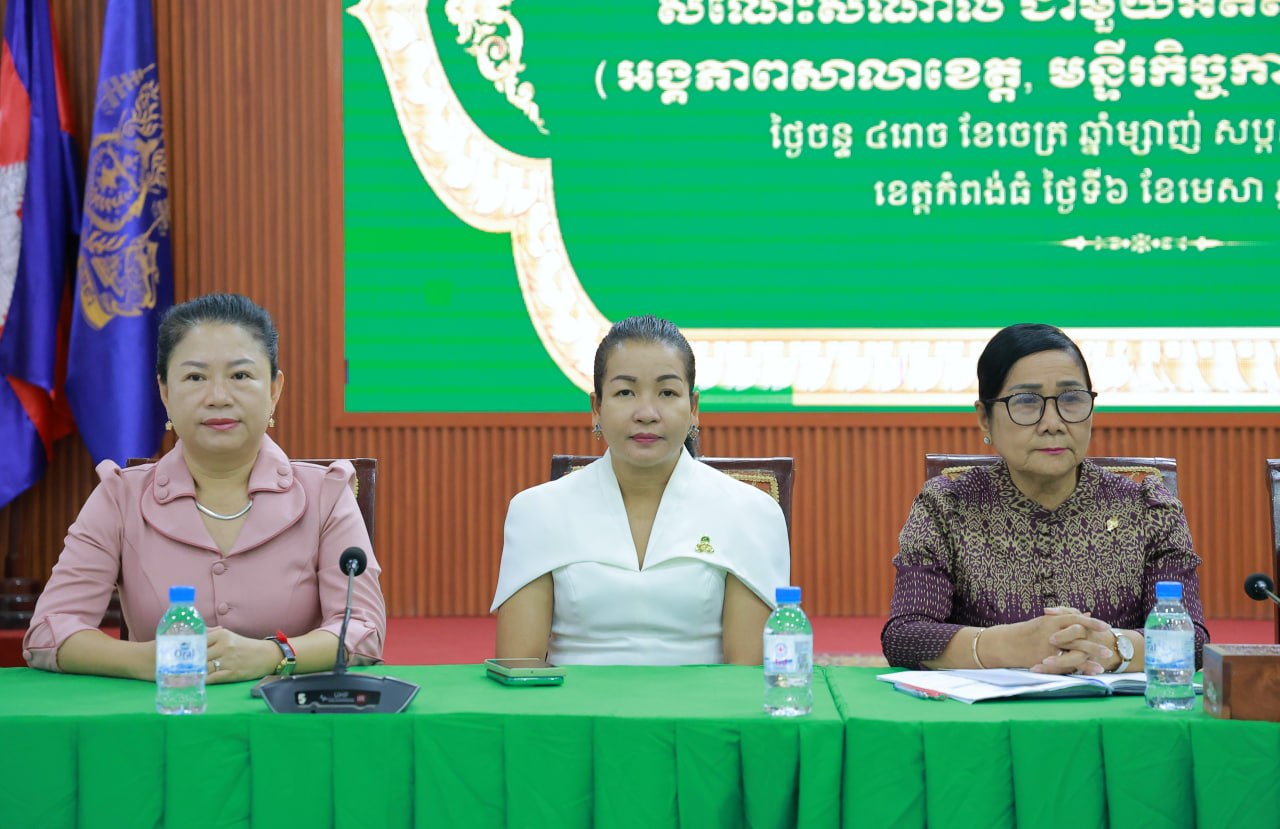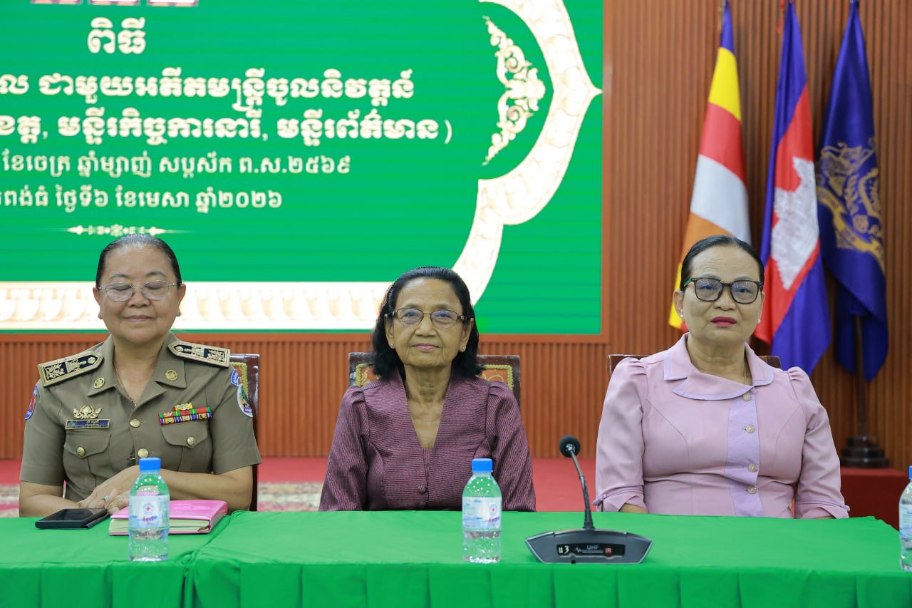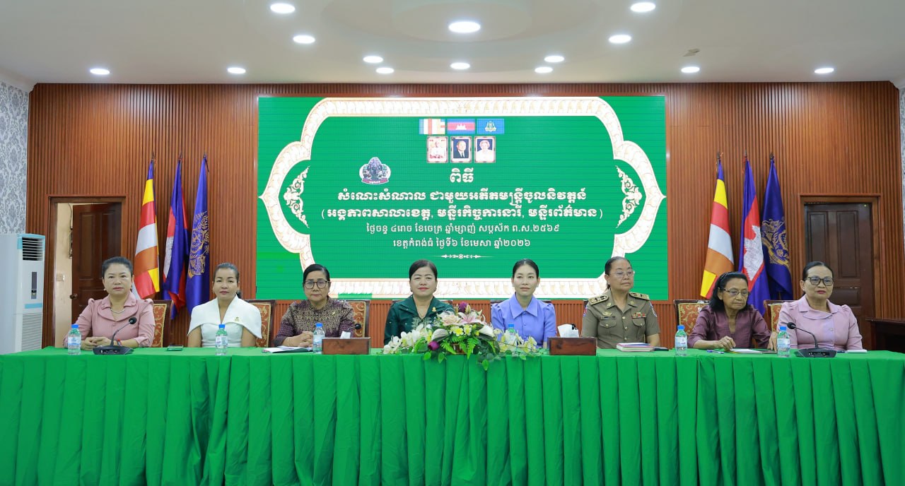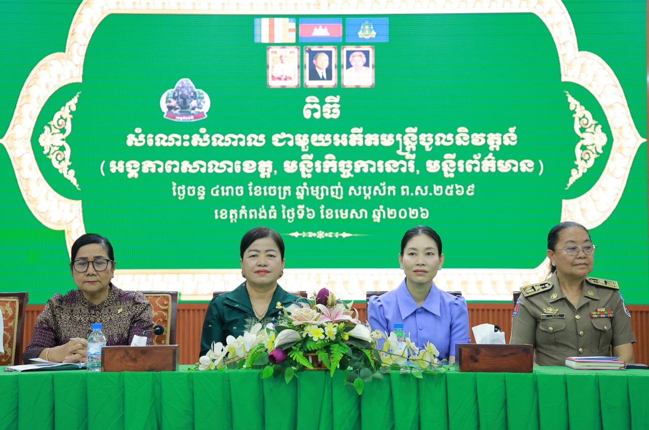 (កំពង់ធំ)៖ លោកជំទាវ ឃួន ឃុនឌី សមាជិកព្រឹទ្ធសភា បានអញ្ជើញចូលរួមក្នុងពិធីជួបសំណេះសំណាល ជាមួយអតីតមន្ត្រីចូលនិវត្តន៍ អង្គភាពសាលាខេត្ត មន្ទីរកិច្ចការនារី មន្ទីរព័ត៌មាន ក្នុងខេត្តកំពង់ធំ នៅសាលប្រជុំប្រាសាទតោ សាលាខេត្តកំពង់ធំ ថ្ងៃទី៦ ខែមេសា ឆ្នាំ២០២៦។