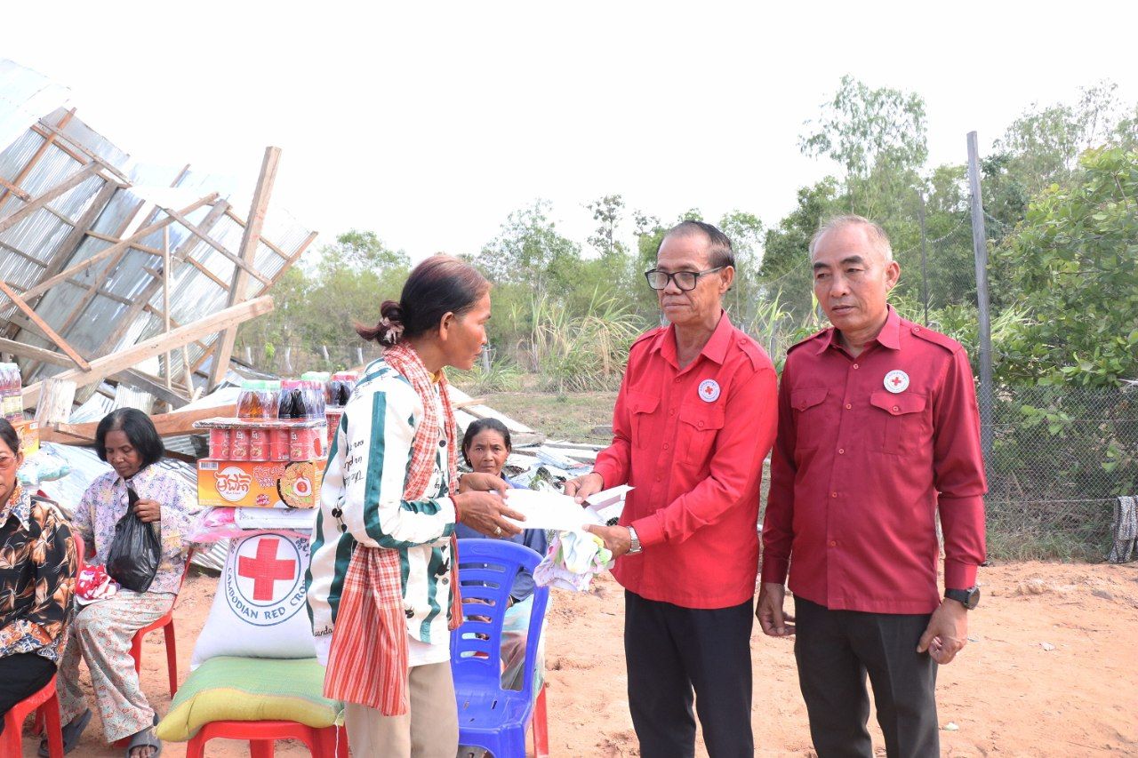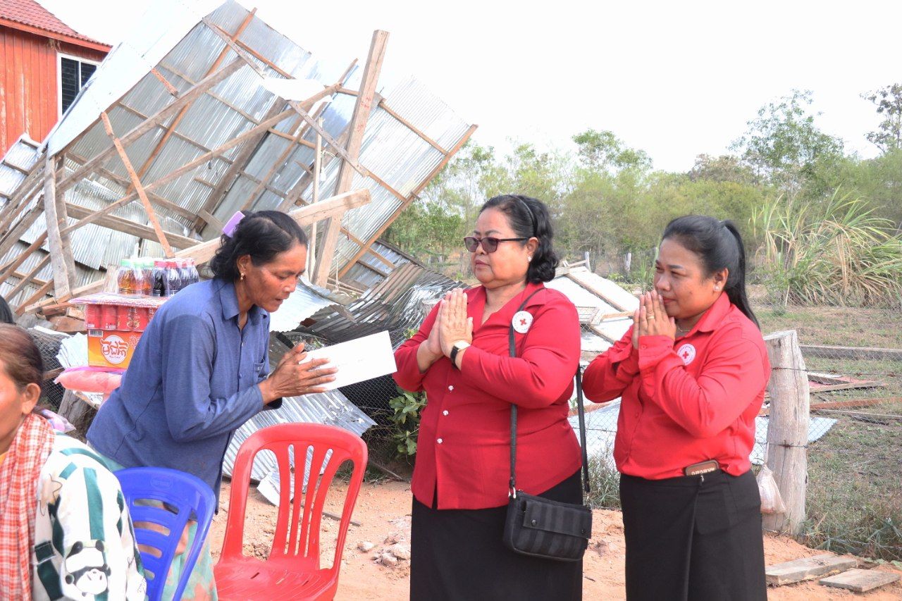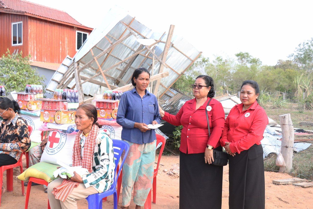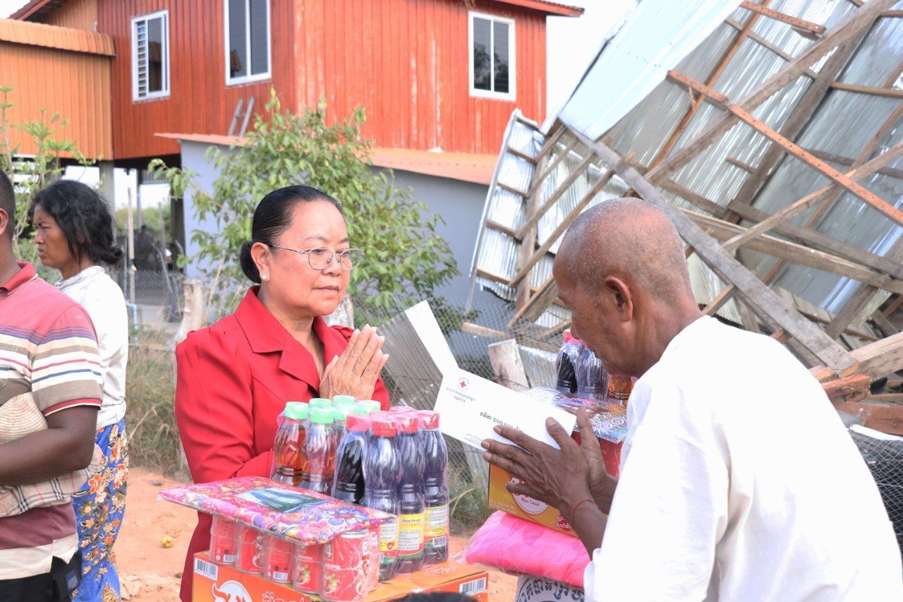 គ្រួសាររដែលរងគ្រោះដោយខ្យល់កន្ត្រាក់០៧គ្រួសារ នៅស្រុកស្ទោង ទទួលបានអំណោយមនុស្សធម៌ ពីសាខាកាកបាទក្រហមកម្ពុជាខេត្តកំពង់ធំ