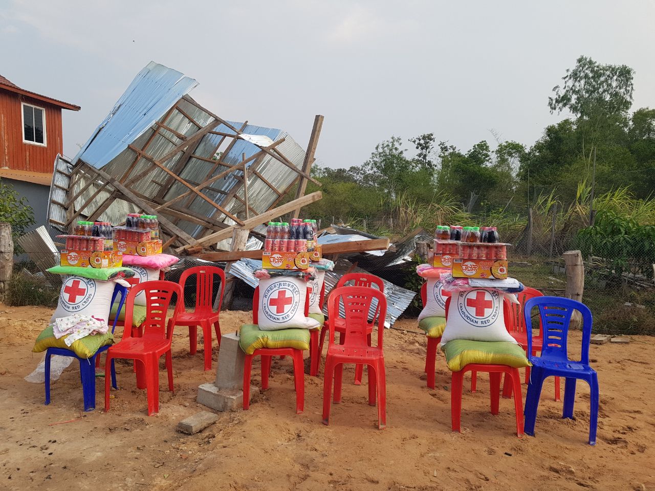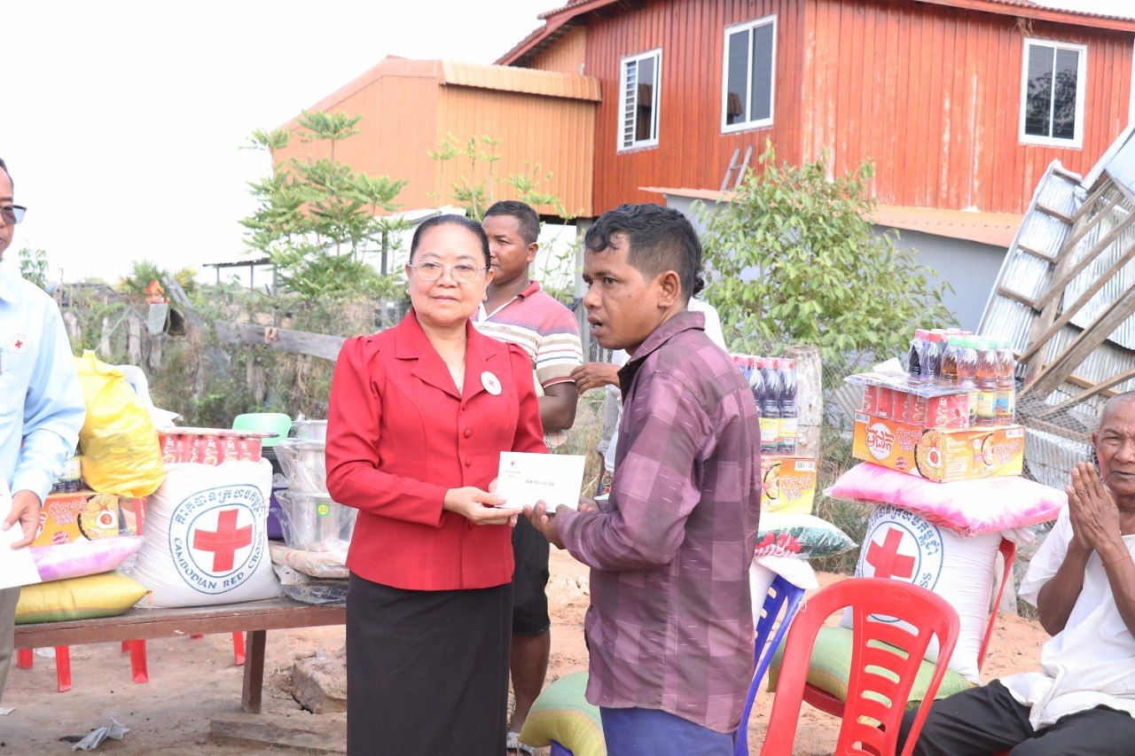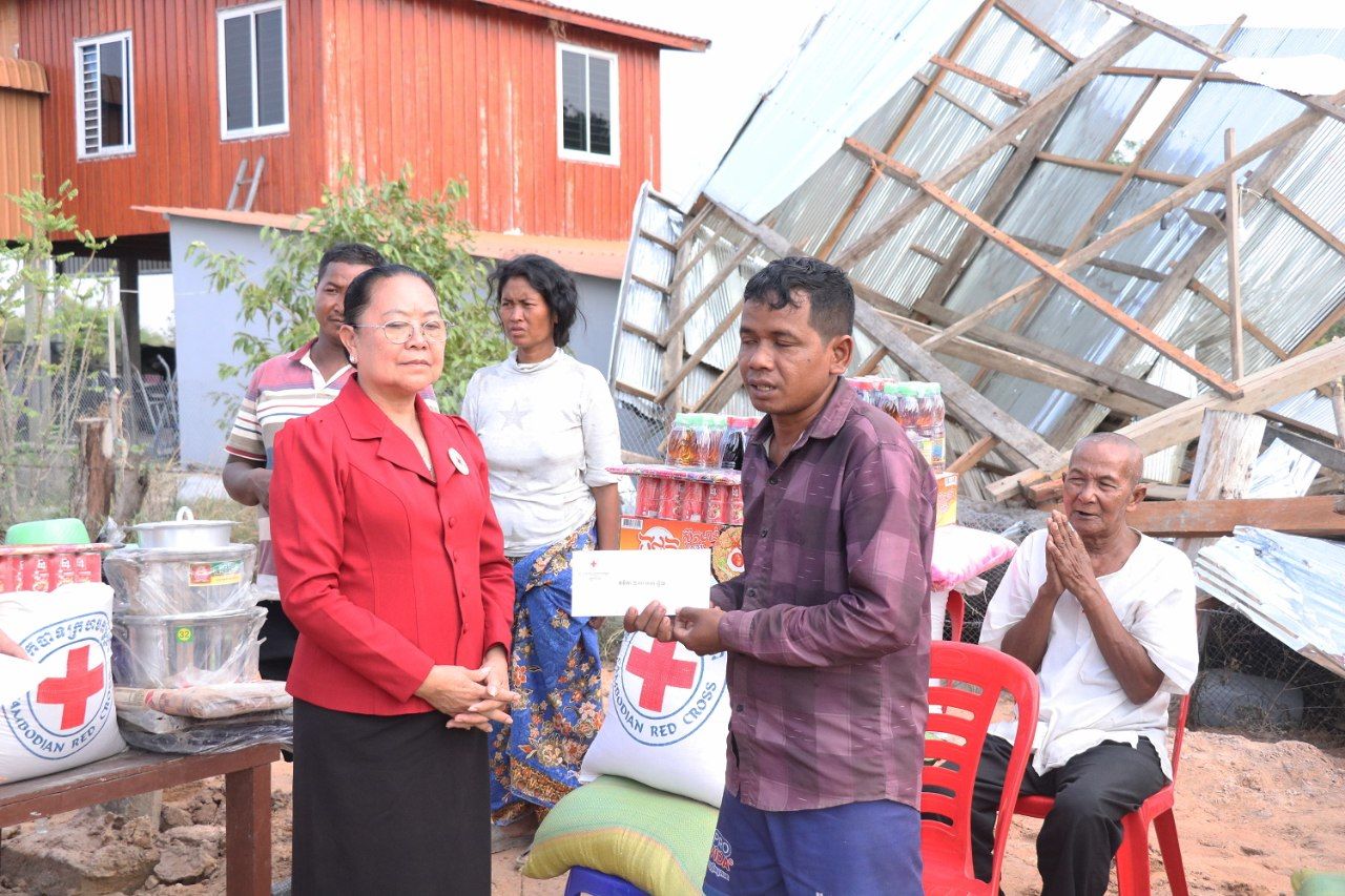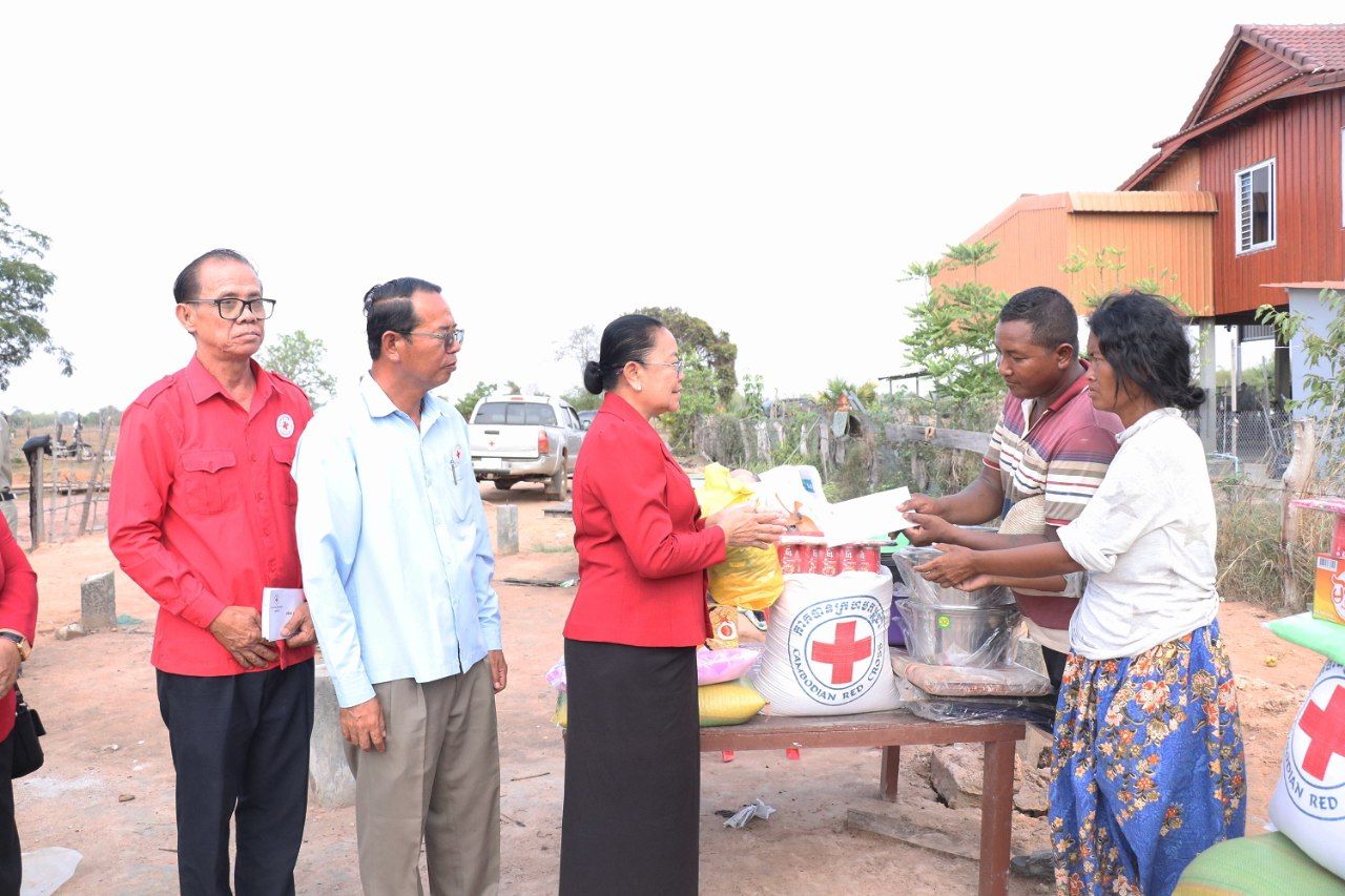 គ្រួសាររដែលរងគ្រោះដោយខ្យល់កន្ត្រាក់០៧គ្រួសារ នៅស្រុកស្ទោង ទទួលបានអំណោយមនុស្សធម៌ ពីសាខាកាកបាទក្រហមកម្ពុជាខេត្តកំពង់ធំ