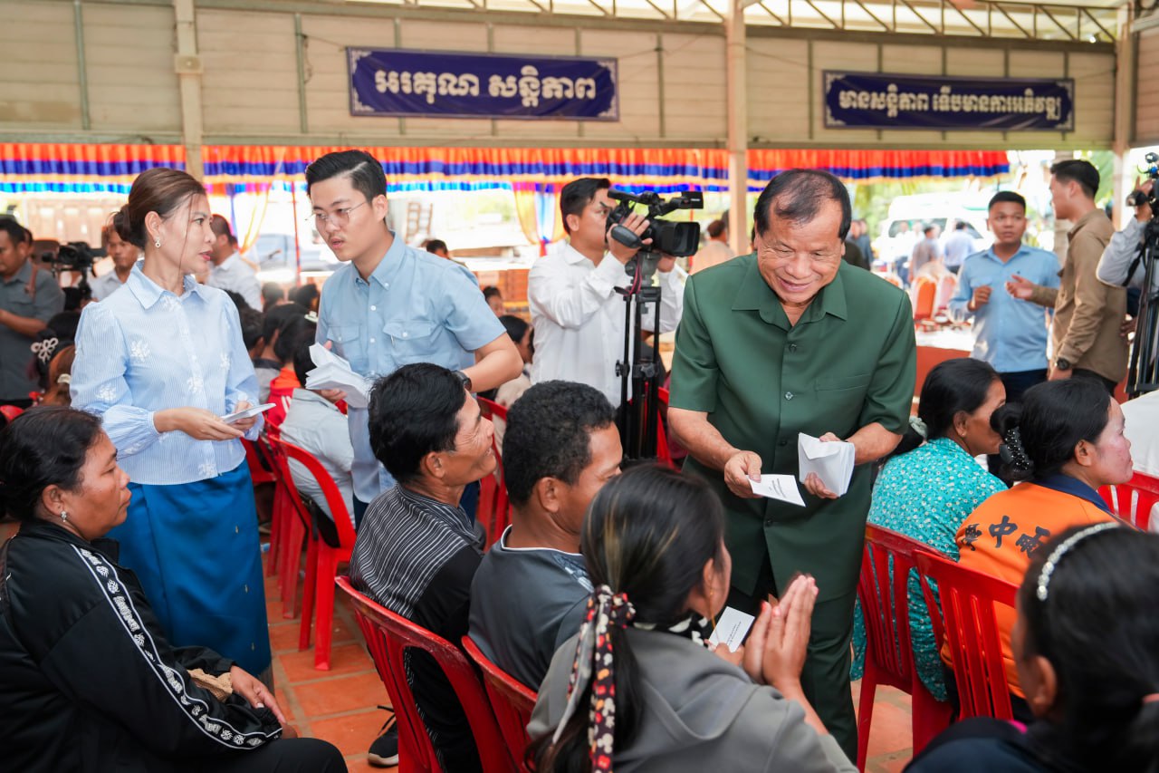 ក្នុងស្មារតីចែករំលែកអំឡុងពេលដ៏លំបាកនេះ ឯកឧត្តមឧបនាយករដ្ឋមន្ត្រីប្រចាំការ វង្សី វិស្សុត បាននាំយកនូវអំណោយថវិកាចែកជូនបងប្អូនតំណាងគ្រួសារប្រជាពលករ ដោយក្នុង១នាក់ទទួលបានថវិកាចំនួន ៥ម៉ឺនរៀល។ ទន្ទឹមនេះ ឯកឧត្តមរដ្ឋមន្ត្រី ហួត ហាក់ ក៏បាននាំយកនូវគ្រឿងឧបភោគបរិភោគសម្រាប់ចែកជូនបន្ថែម ដោយក្នុង១គ្រួសារទទួលបានមីខ្លាឃ្មុំ ១ កេស និងទឹកស៊ីអីវ ១យួរផងដែរ។ អត្ថបទដោយទីស្តីការគណៈរដ្ឋមន្ត្រី