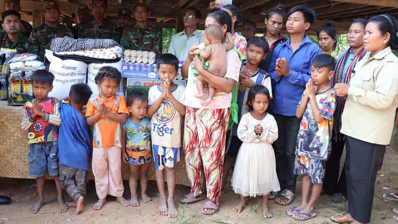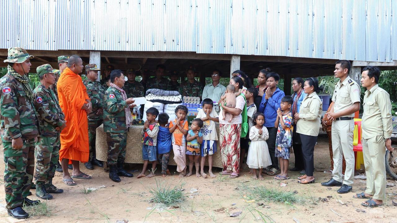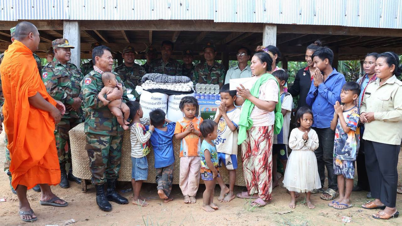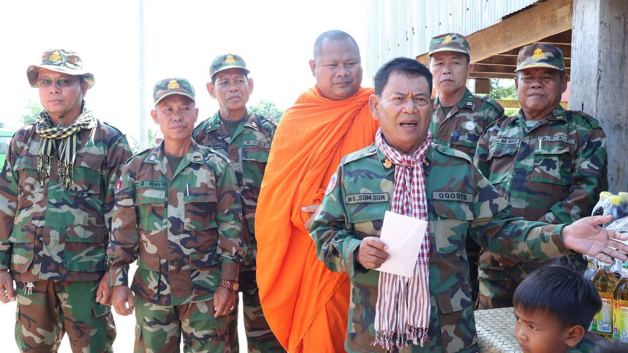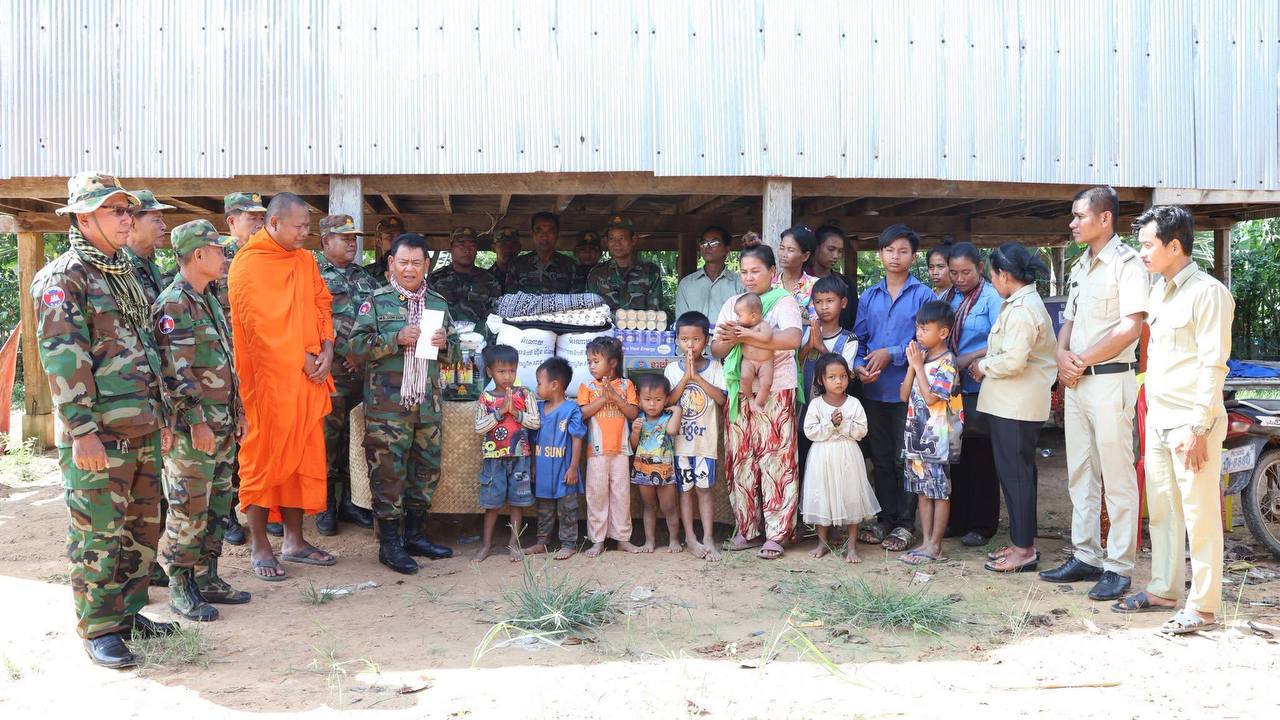 ខេត្តកំពង់ធំ៖ ដោយទទួលបានព័ត៌មានពីអាជ្ញាធរដែនដី និងព្រះសង្ឃ ស្ដីពីក្រុមគ្រួសារយោធិនដែលកំពុងបំពេញភារកិច្ចនៅសមរភូមិមុខមានជីវភាពលំបាកខ្វះខាត ។ នៅព្រឹកថ្ងៃទី ៨ ខែតុលា ឆ្នាំ២០២៥ ឧត្តមសេនីយ៍ទោ សោម ស៊ុន មេបញ្ជាការ តំបន់ប្រតិបត្តិការសឹករងកំពង់ធំ បានដឹកនាំសហការី ទៅសំណេះសំណាលសាកសួរសុខទុក្ខ និងនាំយកនូវអំណោយមនុស្សធម៌របស់សម្ដេចមហាបវរធិបតី ហ៊ុន ម៉ាណែត និងលោកជំទាវបណ្ឌិត ពេជ ចន្ទមុន្នី ទៅជួយដោះស្រាយកាលលំបាកខ្វះខាត ជូនដល់គ្រួសារយោធិនសមរភូមិមុខចំនួនមួយគ្រួសារ ដែលមានកូនតូចៗនៅក្នុងបន្ទុកចំនួន ៦នាក់ កំពុងស្នាក់អាស្រ័យបណ្ដោះអាសន្ននៅជាមួយផ្ទះបងប្អូននៅភូមិកប់ថ្លុក ឃុំដំរីស្លាប់ ស្រុកកំពង់ស្វាយ ខេត្តកំពង់ធំ ។