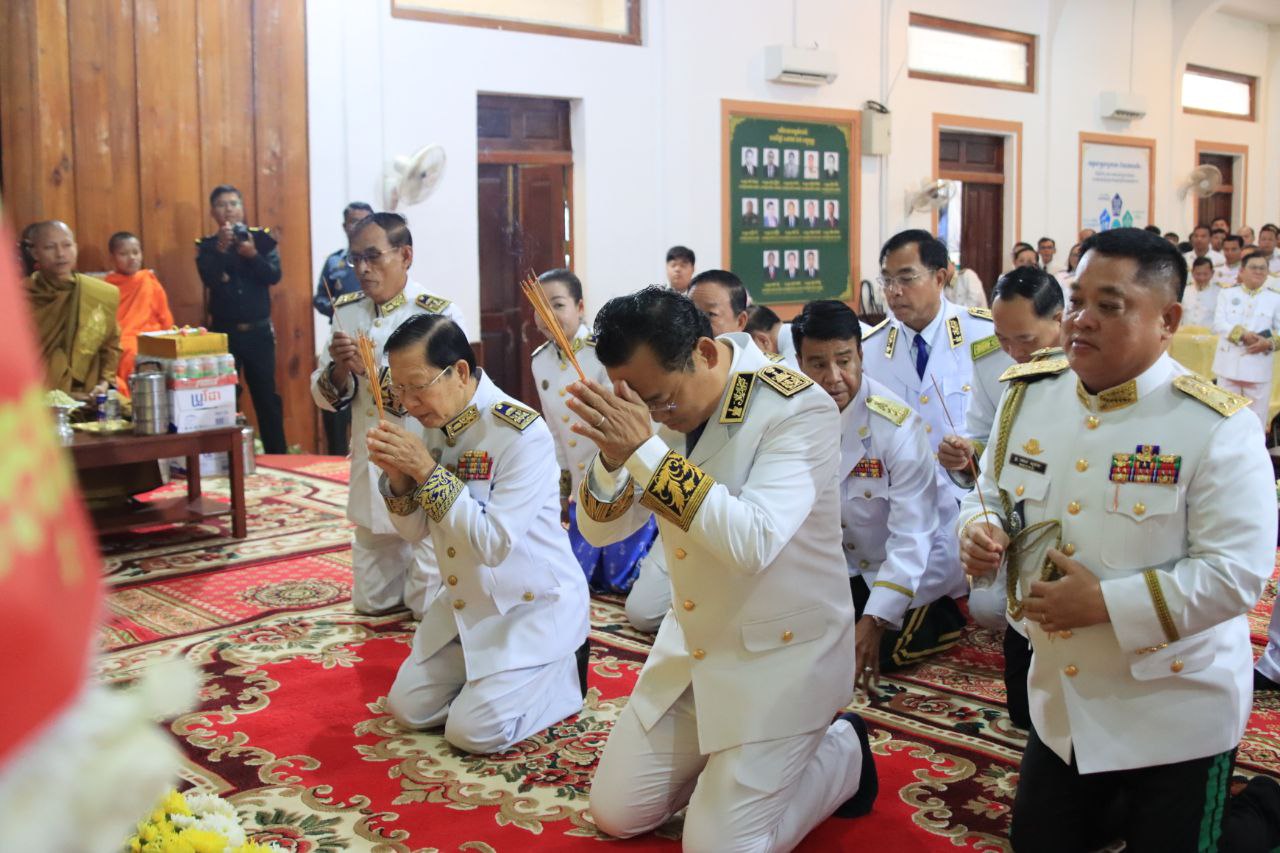 (កំពង់ធំ)៖ ឯកឧត្តម ដៀប ពីរី ប្រធានក្រុមប្រឹក្សាខេត្ត និងឯកឧត្តម នួន ផារ័ត្ន អភិបាលខេត្តកំពង់ធំ ព្រមទាំងឯកឧត្តម លោកជំទាវ ជាសមាជិកក្រុមប្រឹក្សាខេត្ត ថ្នាក់ដឹកនាំនៃរដ្ឋបាលខេត្តកំពង់ធំ លោក លោកស្រី ប្រធានមន្ទីរ មន្រ្តីរាជការអង្គភាពជុំវិញខេត្ត និងកងកម្លាំងប្រដាប់អាវុធទាំងបី ប្រធានសាលាដំបូងខេត្ត និងថ្នាក់ដឹកនាំអយ្យការអមសាលាដំបូងខេត្ត បានរៀបចំប្រារព្ធពិធីគោរពព្រះវិញ្ញាណក្ខន្ធ ព្រះករុណាសម្តេចព្រះនរោត្តម សីហនុ ព្រះមហាវីរក្សត្រ ព្រះវររាជបិតាឯករាជ្យ បូរណភាពទឹកដី និងឯកភាពជាតិខ្មែរ ព្រះបរមរតនកោដ្ឋ គម្រប់ខួប ១៣ឆ្នាំ នៃការយាងសោយព្រះទិវង្គត (១៥ តុលា ២០១២-១៥ តុលា ២០២៥) ដែលកម្មវិធីនេះប្រារព្ធធ្វើឡើងនៅសាលប្រជុំសាលា ខេត្តកំពង់ធំ ថ្ងៃទី១៥ ខែតុលា ឆ្នាំ២០២៥។