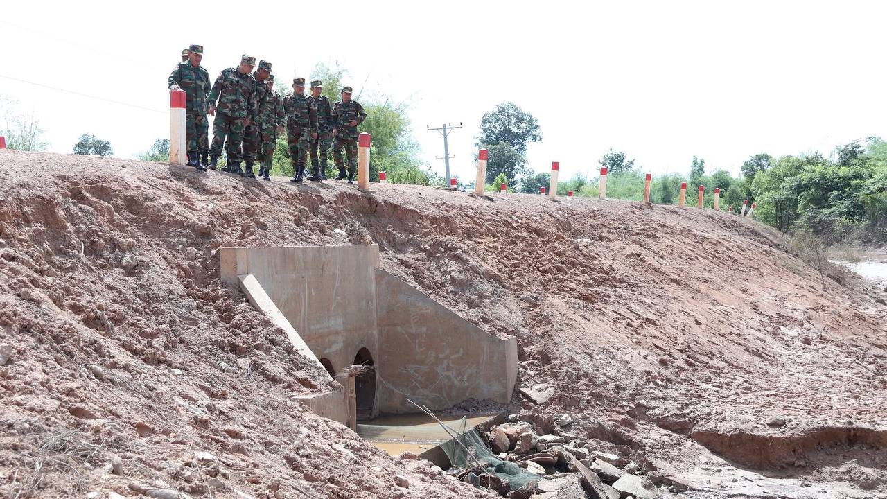 ខេត្តកំពង់ធំ៖ នៅព្រឹកថ្ងៃទី២២ ខែតុលា ឆ្នាំ២០២៥ ឧត្តមសេនីយ៍ទោ សោម ស៊ុន មេបញ្ជាការ តំបន់ប្រតិបត្តិការសឹករងកំពង់ធំ អនុប្រធានក្រុមការងាររាជរដ្ឋាភិបាលចុះមូលដ្ឋានស្រុក និងជាប្រធានក្រុមការងាររបស់រាជរដ្ឋាភិបាលចុះមូលដ្ឋានឃុំដងកាំបិត ស្រុកសណ្ដាន់ ខេត្តកំពង់ធំ បានដឹកនាំសហការី ទៅត្រួតពិនិត្យស្ថានភាពផ្លូវលំក្រាលគ្រួសក្រហមមួយខ្សែ  ដែលរងការខូចខាត ប្រវែងជាង ៥០០ម៉ែត្រ ដោយសារជំនន់ទឹកភ្លៀង នៅក្នុងរដូវវស្សាឆ្នាំ២០២៥ កន្លងទៅនេះ នៅតំបន់អូរពពេល ឃុំដងកាំបិត ស្រុកសណ្ដាន់ ខេត្តកំពង់ធំ ។