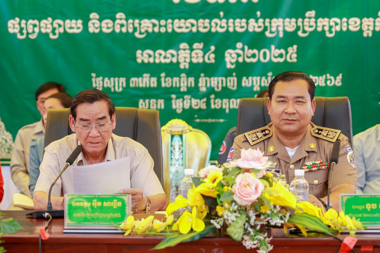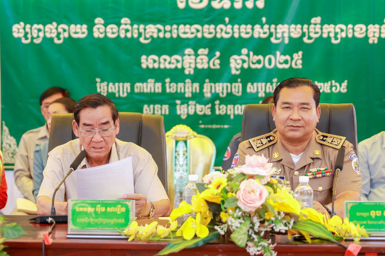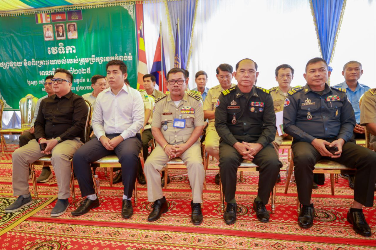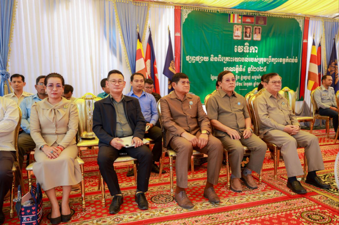 (កំពង់ធំ)៖ ឯកឧត្តម អុឹម សារឿនសមាជិកក្រុមប្រឹក្សាខេត្តកំពង់ធំ និងឯកឧត្តម ទូច សុខា អភិបាលរងខេត្តកំពង់ធំ បានអញ្ជើញជាអធិបតីក្នុងវេទិកាផ្សព្វផ្សាយ និងពិគ្រោះយោបល់របស់ក្រុមប្រឹក្សាខេត្ត អាណត្តិទី ៤ ឆ្នាំ ២០២៥ ដែលបានប្រារព្ធនៅសាលាស្រុកសន្ទុក នាព្រឹកថ្ងៃទី ២៤ ខែតុលា ឆ្នាំ ២០២៥។