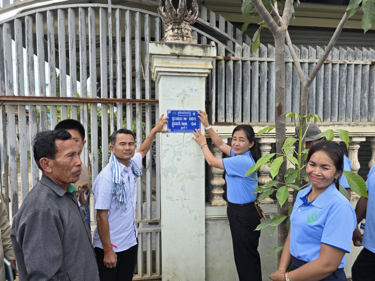 (កំពង់ស្ពឺ)៖កម្មសិក្សាការីថ្នាក់សីលនៃសាលាភូមិន្ទរដ្ឋបាលបានចុះលើកផ្លាកផ្ទះនឹងផ្លាកផ្លូវនៅភូមិរលាំងសង្កែសង្កាត់ សំព័រទេព ក្រុងច្បារមន ខេត្តកំពង់ស្ពឺថ្ងៃទី២៤ ខែតុលា ឆ្នាំ ២០២៥។