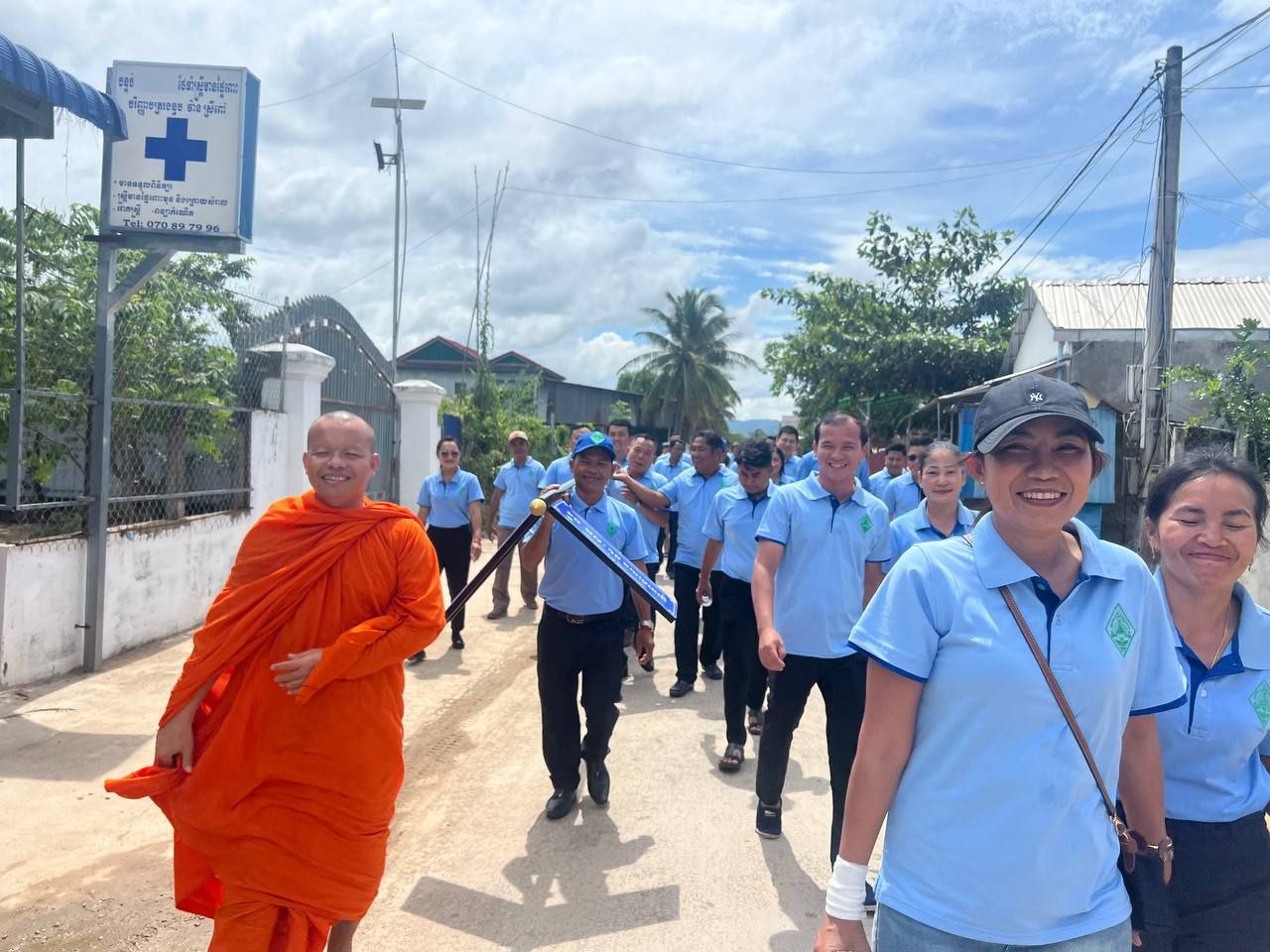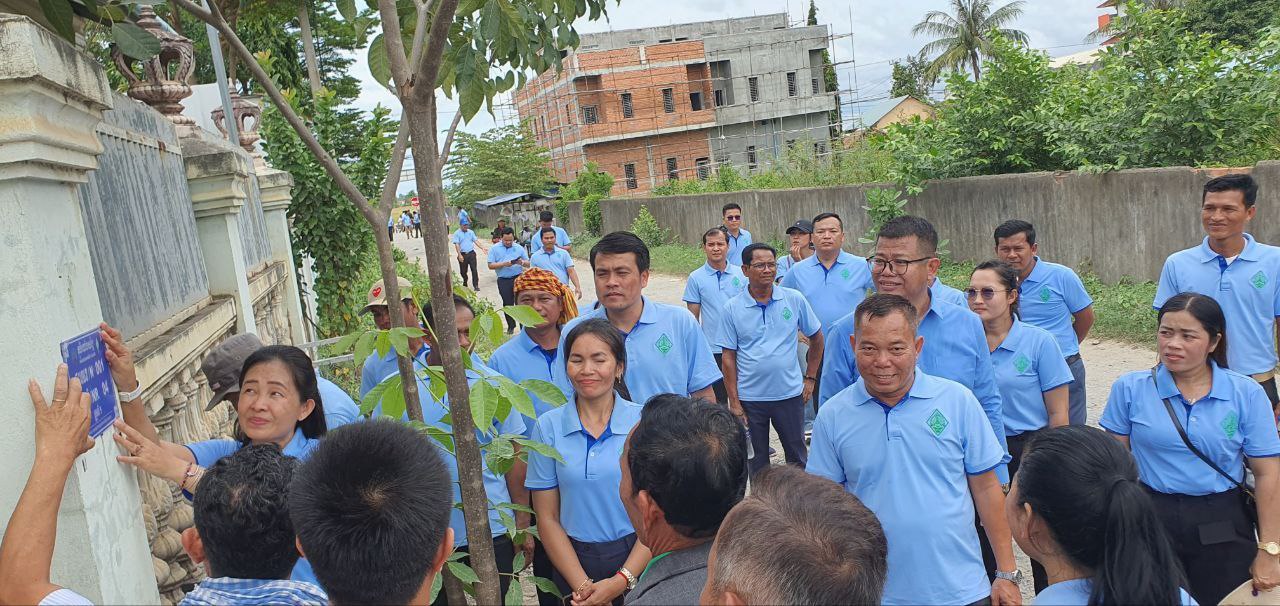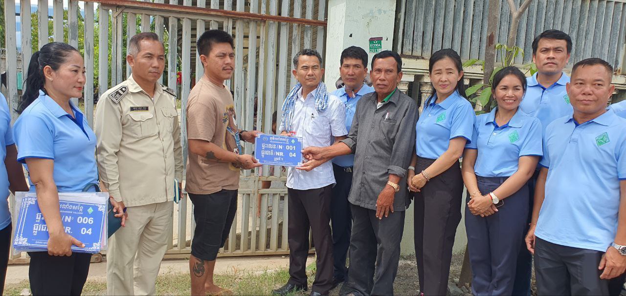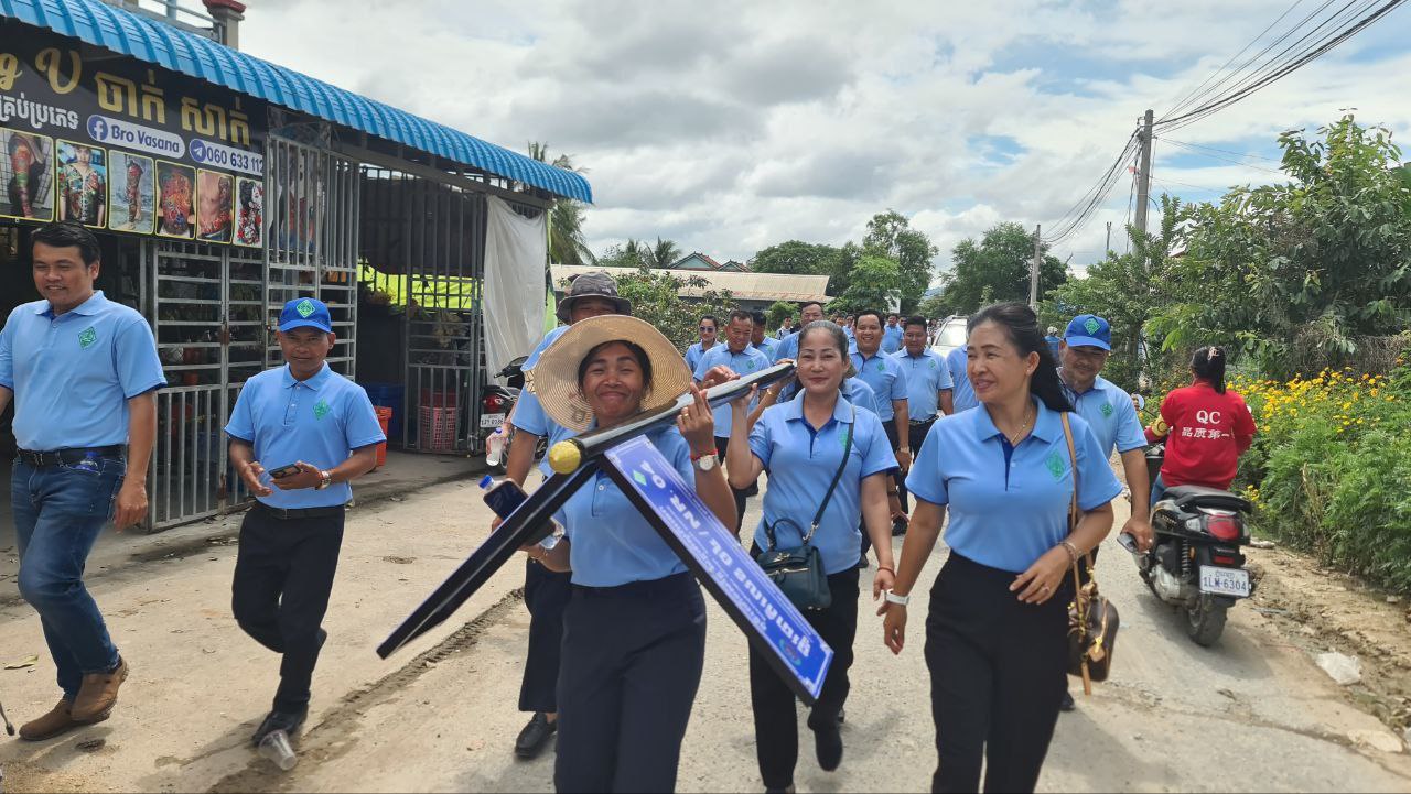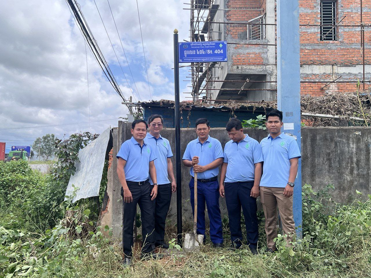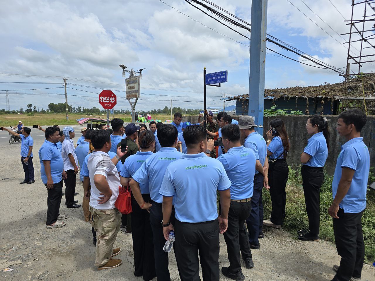 កម្មសិក្សាការីថ្នាក់សីល នៃសាលាភូមិន្ទរដ្ឋបាលបានចុះលើកផ្លាកផ្ទះនឹងផ្លាកផ្លូវ នៅ ក្រុងច្បារមន ខេត្តកំពង់ស្ពឺ
