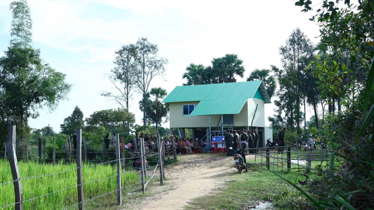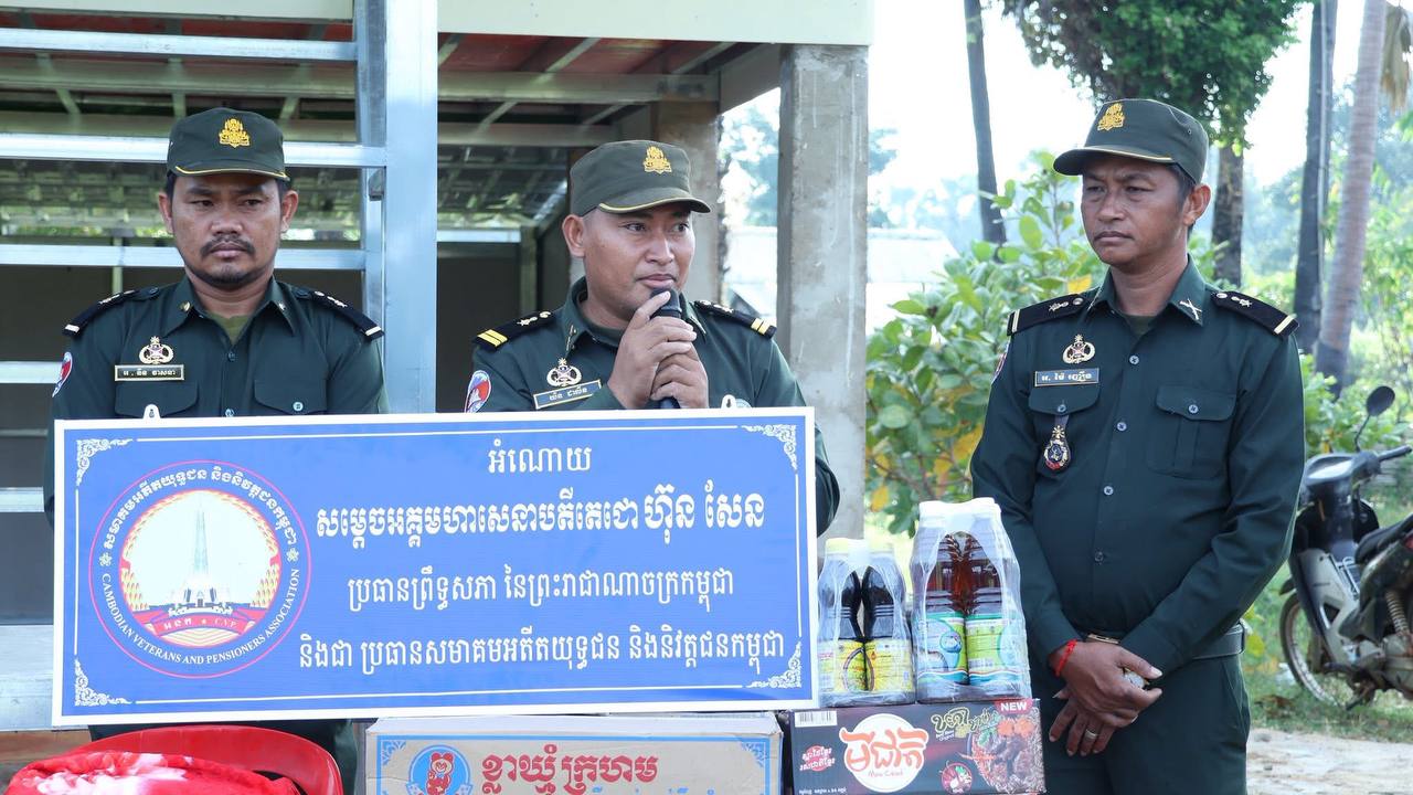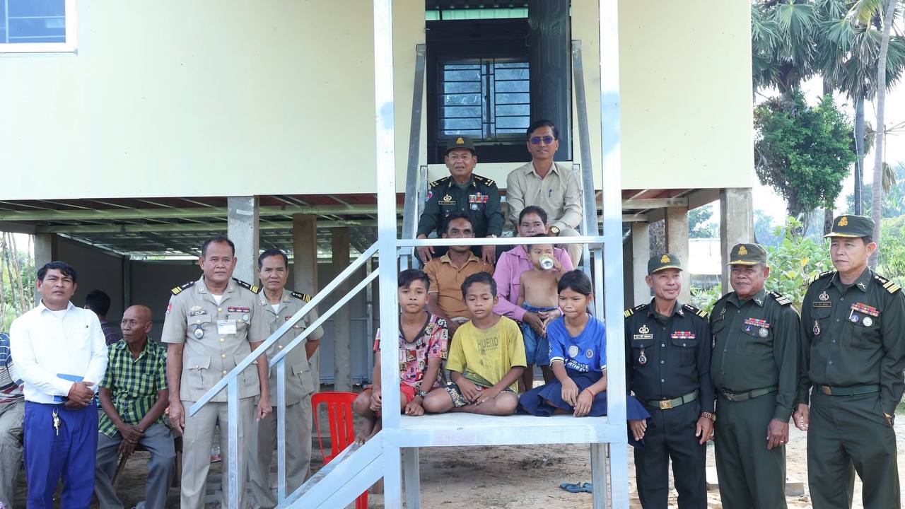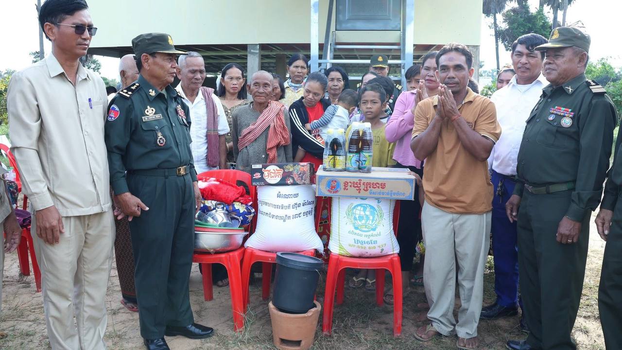 ខេត្តកំពង់ធំ៖ នៅព្រឹកថ្ងៃទី២៦ ខែតុលា ឆ្នាំ២០២៥ ឧត្តមសេនីយ៍ទោ សោម ស៊ុន មេបញ្ជាការ តំបន់ប្រតិបត្តិការសឹករងកំពង់ធំ តំណាងគណៈកម្មាធិការសមាគមអតីតយុទ្ធជន និងនិវត្តជនកម្ពុជា ខេត្តកំពង់ធំ បានដឹកនាំសហការី រួមជាមួយអាជ្ញាធរដែនដី ទៅប្រគល់ផ្ទះថ្មី ដែលទើបសាងសង់ថ្មី នៅលើដីកម្មសិទ្ធិ របស់អតីតយុទ្ធជនពិការដោយសារសង្គ្រាម មានដីតែមានជម្រករស់នៅមិនសមរម្យ និងមានសមាជិកគ្រួសារច្រើននាក់ នៅភូមិមហរ ឃុំជ័យ ស្រុកកំពង់ស្វាយ ខេត្តកំពង់ធំ ។