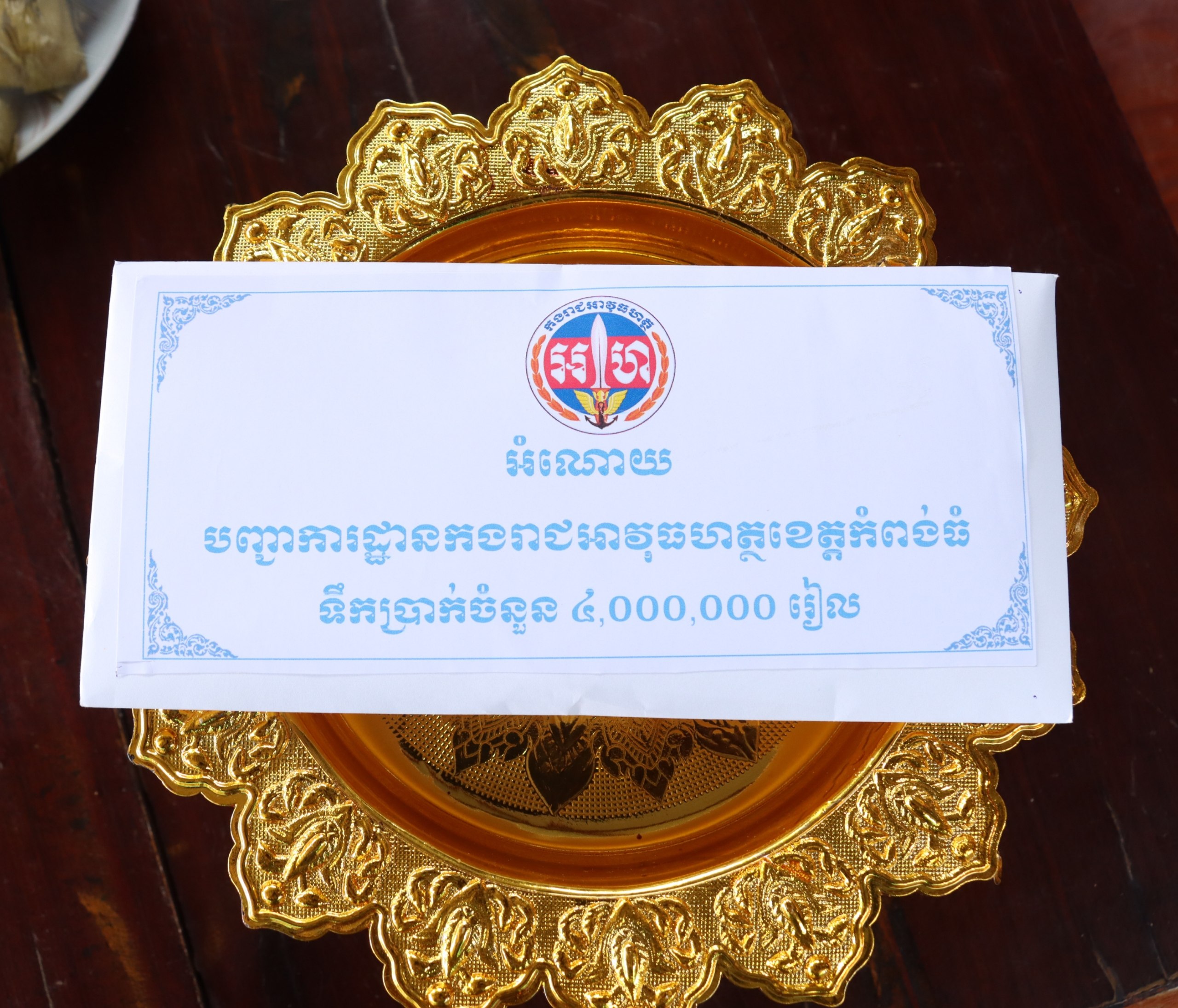សូមបញ្ជាក់ផងដែរថា ឧត្តមសេនីយ៍ត្រី មាស យ៉ត មេបញ្ជាការ កងរាជអាវុធហត្ថខេត្តកំពង់ធំ បានដឹកនាំសហការីបាននាំយកថវិការចំនួន៤,០០០,០០០រៀល (បួនលានរៀល)និងគ្រឿងឧបភោគបរិភោគ មួយចំនួន ជូនដល់លោកវរសេនីយ៍ទោ ថៃ ដានិត ផងដែរ។ អត្ថបទកងរាជអាវុធហត្ថខេត្តកំពង់ធំ-ពិនិត្យដោយអ៊ុមញឹប។