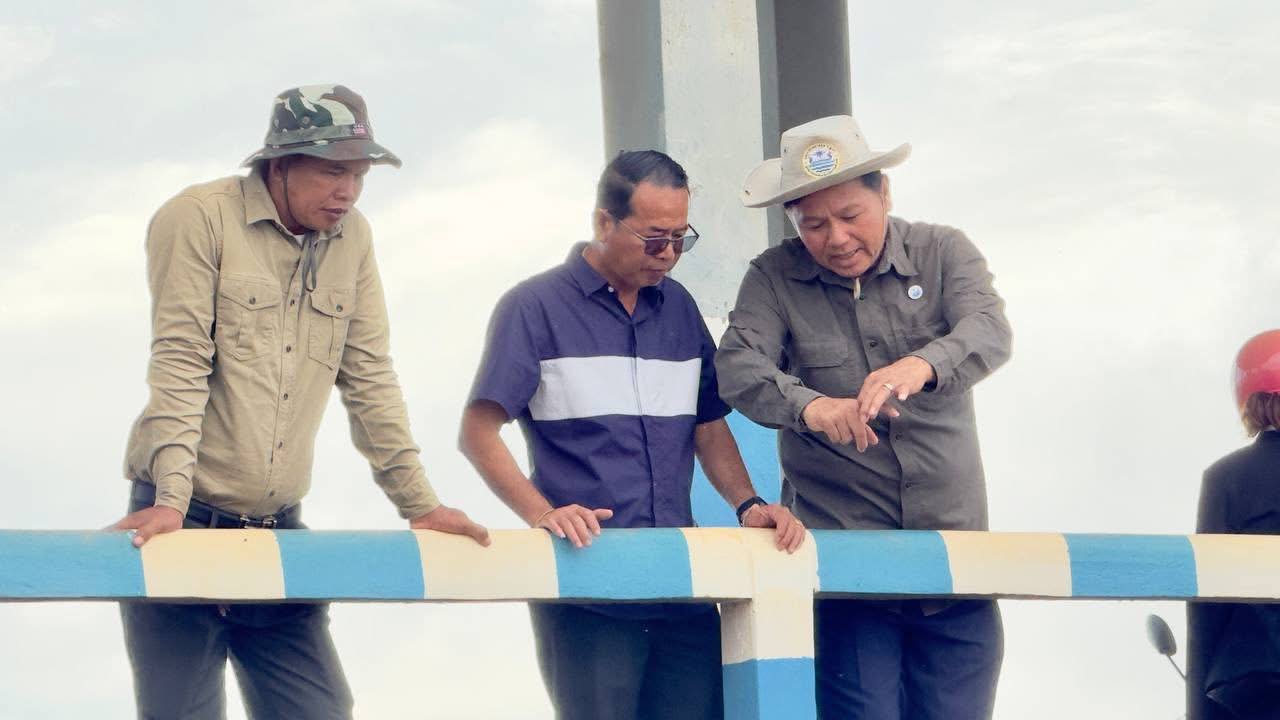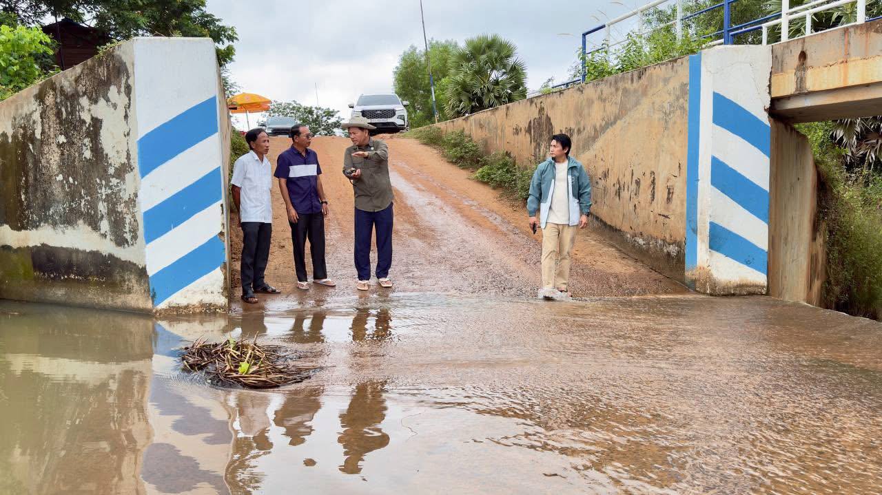 (កំពង់ធំ)÷ លោក ផាង វី ប្រធាននាយកដ្ឋានធារាសាស្ត្រកសិកម្ម នៃក្រសួងធនធានទឹកនិងឧតុនិយម ព្រមទាំងសហការី និងលោកសាយ គឹមឡម អភិបាលស្រុកស្ទោង បានអញ្ជើញចុះពិនិត្យមើលវឌ្ឍនភាពការជួសជុលទ្វារទឹកអាង៣០កញ្ញា ដើម្បីធានាសន្តិសុខទឹកសម្រាប់ពុកម៉ែបងប្អូនប្រជាកសិករធ្វើស្រែប្រាំងនារដូវប្រាំងឆ្នាំនេះប្រកបដោយសុវត្ថិភាព នៅថ្ងៃទី០៥ ខែវិច្ឆិកា ឆ្នាំ២០២៥។