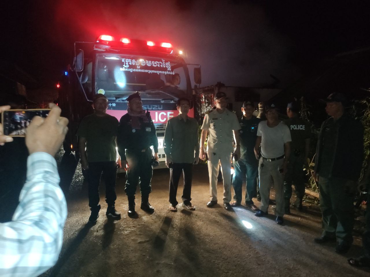 លោក ឃន ចានថៃ អភិបាលស្រុកបារាយណ៍ និងលោកអធិការ ក្នុងនោះកម្លាំងដែលចូលរួមសរុបរួមមាន÷កម្លាំងអធិការដ្ឋាននគរបាលស្រុកបារាយណ៍ ចំនួន៦៣នាក់កម្លាំងអធិការស្រុកសន្ទុកចំនួន១៥នាក់ កម្លាំងអធិការស្រុកតាំងគោកចំនួន១០នាក់ កម្លាំងប្រជាការពារ និងប្រជាពលរដ្ឋឃុំឈូកខ្សាច់ចំនួន២៥០នាក់។ រយៈពេលកម្លាំងអន្តរគមន៍មកដល់ម៉ោង២០:៤៨នាទី និងគ្រប់គ្រងអគ្គីភ័យឆាបឆេះបាន១០០% នៅម៉ោង២២:០០នាទីដោយប្រើប្រាស់រថយន្តពន្លត់អគ្គិភ័យនិងសង្គ្រោះចំនួន៣គ្រឿងមាន÷ រថយន្តពន្លត់អគ្គិភ័យនិងសង្គ្រោះរបស់អង្គភាពអធិការដ្ឋាននគរបាលស្រុកបារាយណ៍ចេញជួយអន្តរាគមន៍ចំនួន០២គ្រឿង ស្មើនឹង៦,៥ ម៉ែត្រគូប។ រថយន្តពន្លត់អគ្គិភ័យនិងសង្គ្រោះរបស់អង្គភាពអធិការដ្ឋាននគរបាលស្រុកសន្ទុក០១គ្រឿនចេញជួយស្មើនឹង០៤ម៉ែត្រគូប។ រថយន្តពន្លត់អគ្គិភ័យនិងសង្គ្រោះរបស់អង្គភាពអធិការដ្ឋាននគរបាលស្រុកតាំងគោក០១គ្រឿនចេញជួយស្មើនឹង០៤ ម៉ែត្រគូប។ មូលហេតុ កំពុងស្រាវជ្រាវ(អាចបណ្តាលមកពី ផ្ទុះសេខ្សែភ្លើង )។ អត្ថបទរដ្ឋបាលស្រុកបារាយណ៍-ពិនិត្យដោយអ៊ុមញឹប។