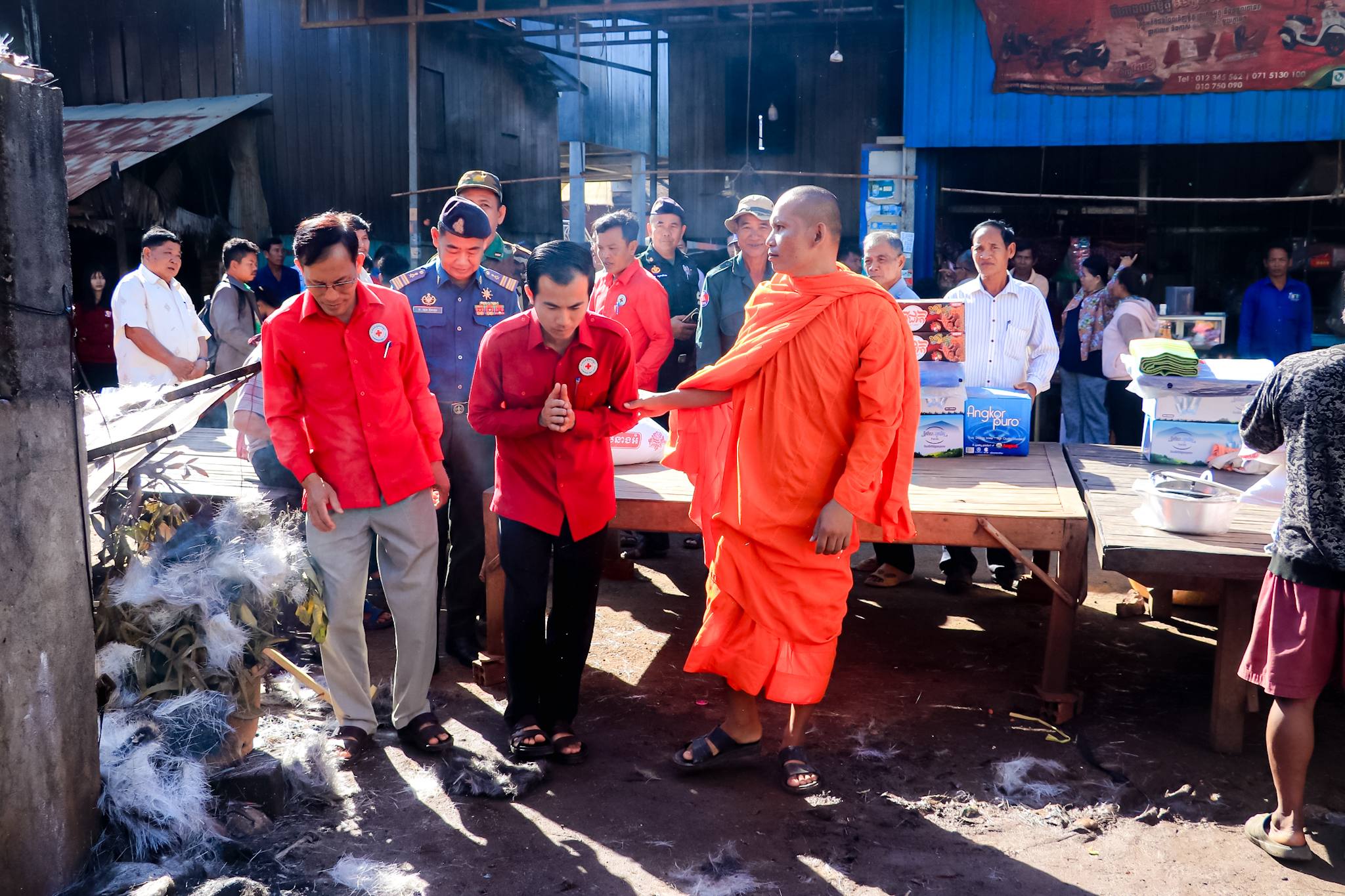 (កំពង់ធំ)÷ លោក ឃន ចាន់ថៃ អភិបាលស្រុក ជាប្រធានគណៈកម្មាធិការអនុសាខាកាកបាទក្រហមកម្ពុជាស្រុក បារាយណ៍ នៅព្រឹកថ្ងៃទី០៧ ខែធ្នូ ឆ្នាំ២០២៥ ដោយមានការនិមន្តចូលរួមពីព្រះមន្ត្រីសង្ឃស្រុក ព្រះគ្រូចៅអធិការវត្តក្តាមហា ក្រុមកាកបាទក្រហមឃុំឈូកខ្សាច់ និងនគរបាលប៉ុស្តិ៍រដ្ឋបាលឃុំឈូកខ្សាច់ បាននាំយកអំណោយមនុស្សធ៌មរបស់អនុសាខាស្រុក អំណោយតាមវត្ត និងរបស់រដ្ឋបាលឃុំ ទៅជូនដល់គ្រួសាររងគ្រោះដោយភ្លើងឆេះផ្ទះចំនួន៤ខ្នងមាន៤គ្រួសារ នៅភូមិក្តាមហា ឃុំឈូកខ្សាច់ ស្រុកបារាយណ៍ខេត្តកំពង់ធំ កាលពីយប់ថ្ងៃទី០៧ ខែធ្នូ ឆ្នាំ២០២៥។