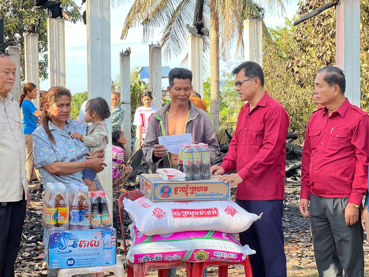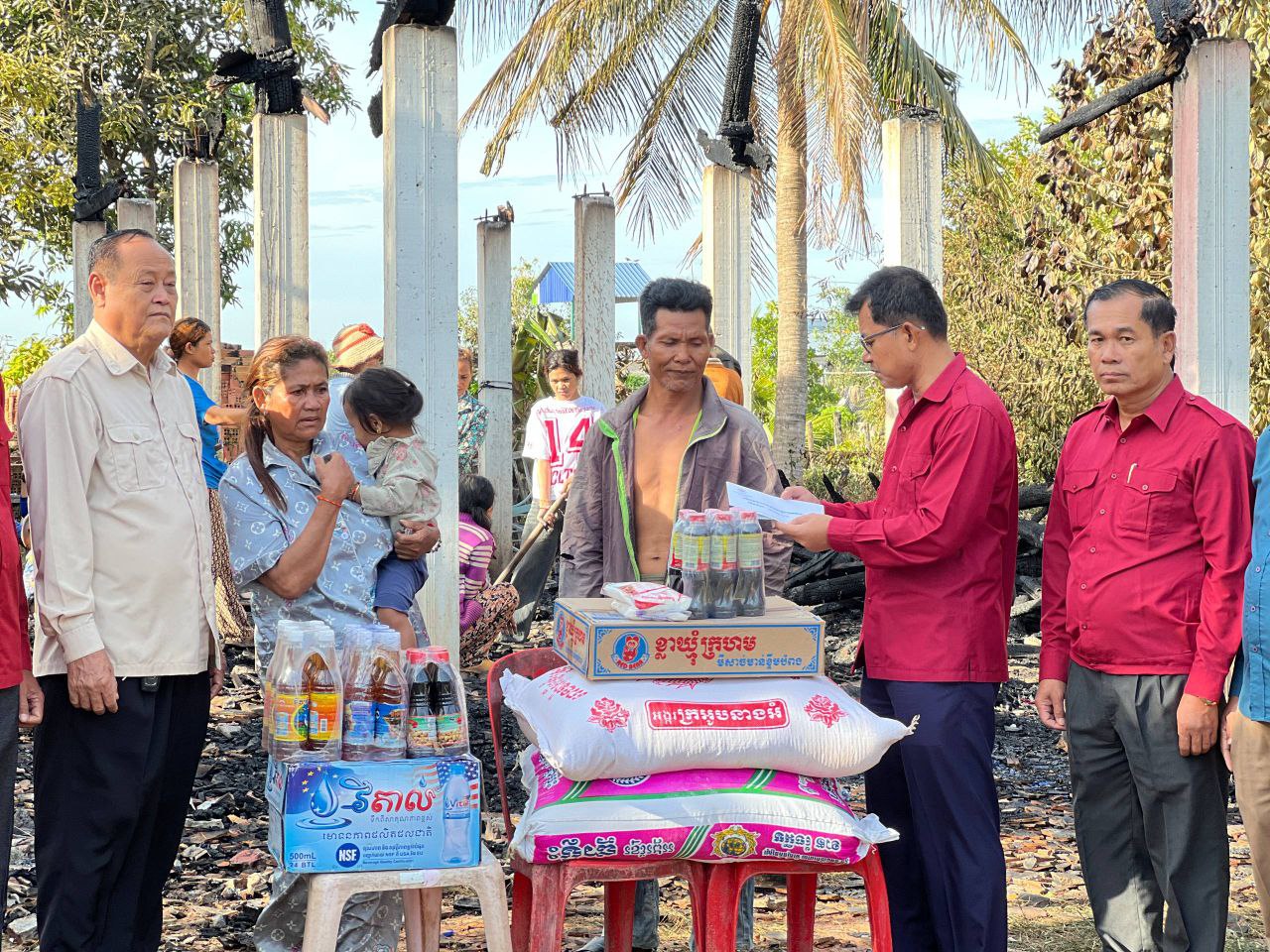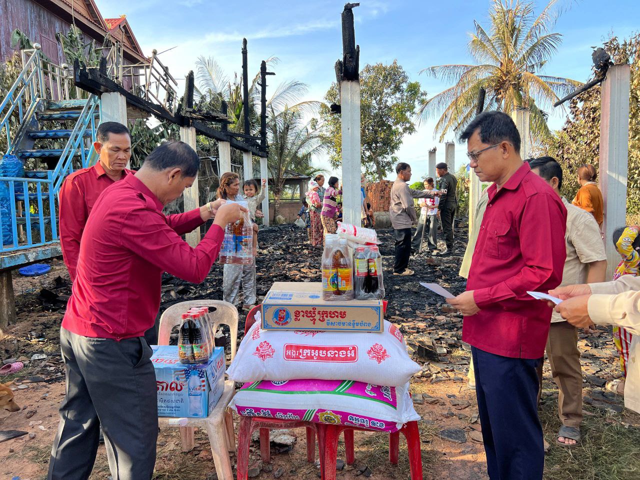 អភិបាលស្រុកកំពង់ស្វាយ នាំយកអំណោយមនុស្សធម៌របស់អនុសាខាកាកបាទក្រហមកម្ពុជាស្រុក ទៅប្រគល់ជូនដល់គ្រួសារដែលរងគ្រោះដោយភ្លើងឆេះផ្ទះ១ខ្នងអស់ទាំងស្រុង