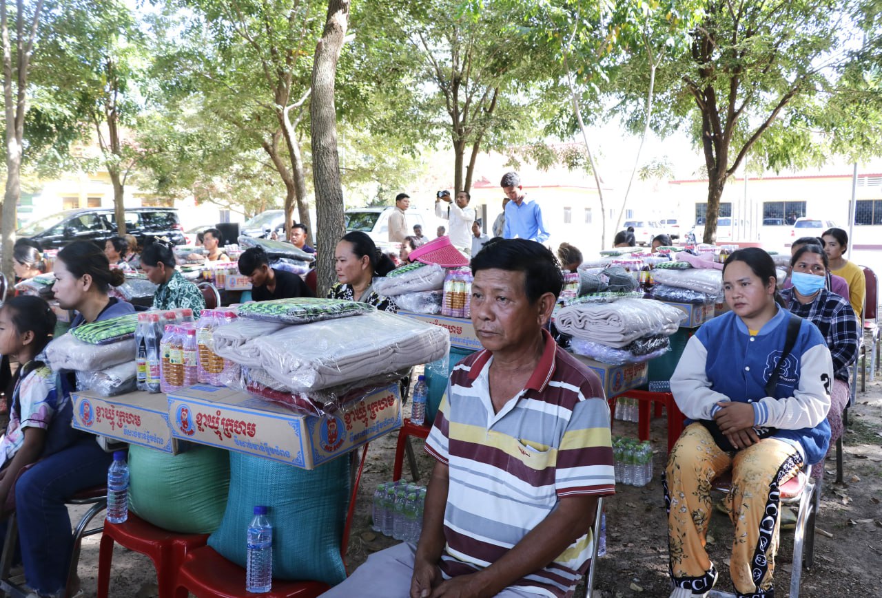 ប្រធានក្រុមការងារចុះមូលដ្ឋានស្រុកកំពង់ស្វាយ ជួបសំណេះសំណាល សួរសុខទុក្ខ និងនាំយកអំណោយជូនដល់គ្រួសារវីរកងទ័ពជួរមុខ ចំនួន៥០គ្រួសា ក្នុងស្រុកកំពង់ស្វាយ ខេត្តកំពង់ធំ