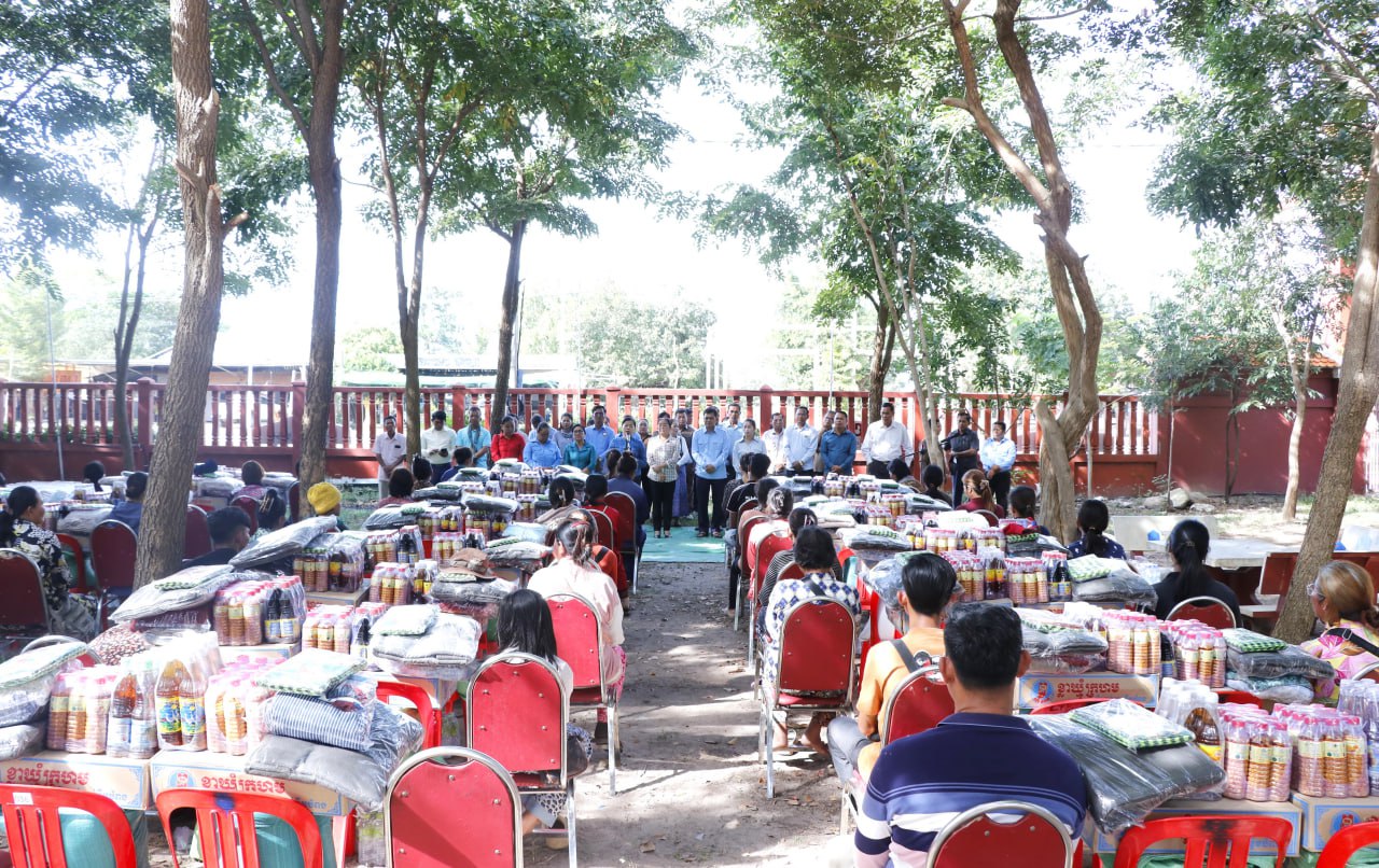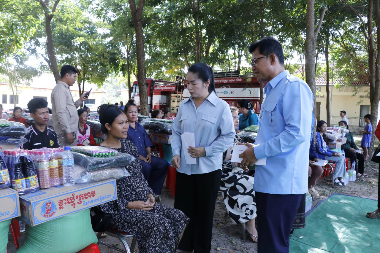 (កំពង់ធំ)៖ លោកជំទាវ ឃួន ឃុនឌី សមាជិកព្រឹទ្ធសភា និងជាប្រធានក្រុមការងារចុះមូលដ្ឋានស្រុកកំពង់ស្វាយ លោកជំទាវ យស ថានារី សមាជិករដ្ឋសភា លោកជំទាវ លំ គន្ធារី អភិបាលរងខេតកំពង់ធំ អភិបាល អភិបាលរងស្រុក និងថ្នាក់ដឹកនាំក្នុងស្រុកកំពង់ស្វាយ ខេត្តកំពង់ធំ បានជួបសំណេះសំណាល សួរសុខទុក្ខ និងនាំយកអំណោយជូនដល់គ្រួសារវីរកងទ័ពជួមុខ ចំនួន៥០គ្រួសារ នៅក្នុងបរិវេនសាលាស្រុកកំពង់ស្វាយ ថ្ងៃទី១៣ ខែធ្នូ ឆ្នាំ២០២៥។