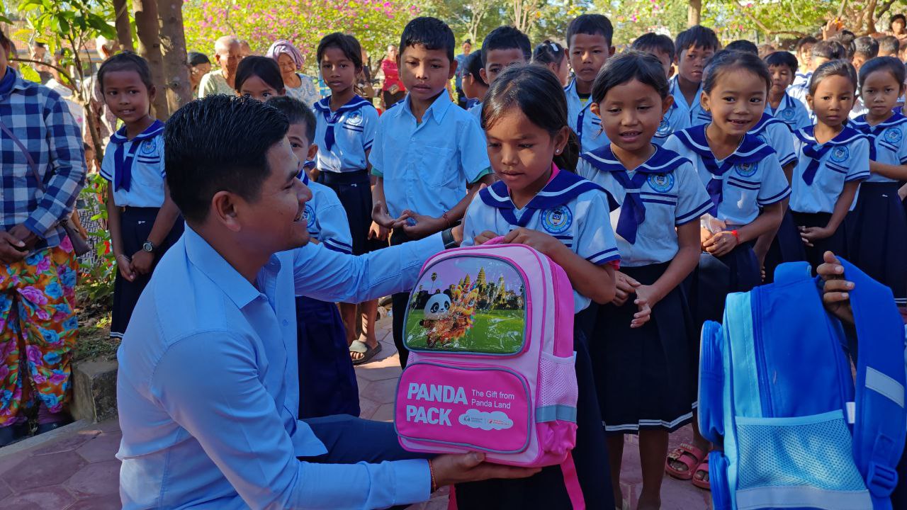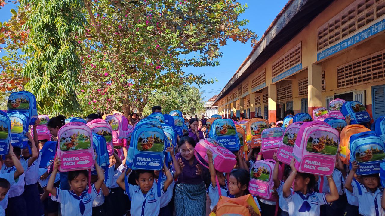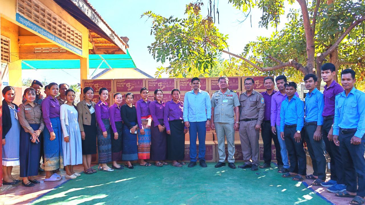 អំណោយកញ្ចប់ Panda ឆ្នាំ២០២៥ រួមមាន កាតាប Panda ចំនួន3,630កញ្ចប់ នៅសាលាគោលដៅចំនួន ១៩សាលាក្នុងស្រុក ប្រាសាទបល្ល័ង្ក ខេត្តកំពង់ធំនៅថ្ងៃទី២៣ ខែធ្នូ ឆ្នាំ២០២៥។