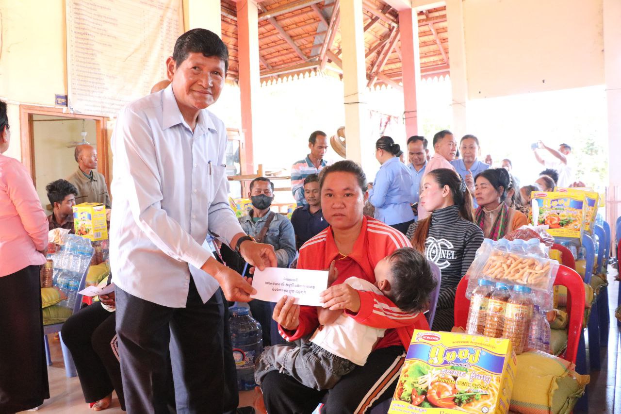 អភិបាលរងខេត្តកំពង់ធំ អញ្ជើញជួបសំណេះសំណាល និងចែកអំណោយជនភៀសសឹក៣០គ្រួសារ ដែលមកស្នាក់នៅបណ្តោះអាសន្នក្នុងឃុំក្តីដូងស្រុកកំពង់ស្វាយ