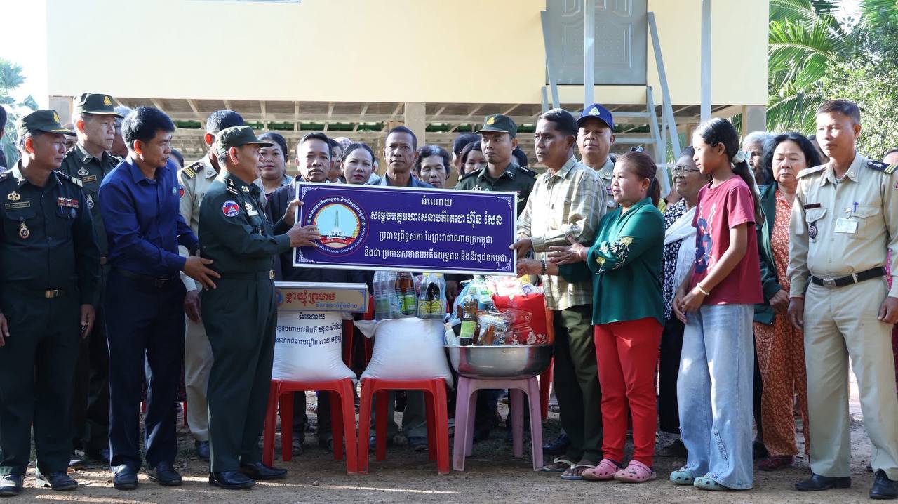 ខេត្តកំពង់ធំ៖ នៅព្រឹកថ្ងៃទី៤ ខែមករា ឆ្នាំ២០២៦ ឧត្តមសេនីយ៍ទោ សោម ស៊ុន មេបញ្ជាការ តំបន់ប្រតិបត្តិការសឹករងកំពង់ធំ តំណាងគណៈកម្មាធិការសមាគមអតីតយុទ្ធជន និងនិវត្តជនកម្ពុជា ខេត្តកំពង់ធំ អមដំណើរដោយលោក ជួន សិលាវិត ប្រធានសាខាមូលនិធិជាតិជំនួយសង្គមខេត្តកំពង់ធំ បានដឹកនាំសហការី ទៅប្រគល់ផ្ទះថ្មី ដែលជាអំណោយដ៏ថ្លៃថ្លារបស់សម្ដេចអគ្គមហាសេនាបតីតេជោ ហ៊ុន សែន ប្រធានព្រឹទ្ធសភា និងជាប្រធានសមាគមអតីតយុទ្ធជន និងនិវត្តជនកម្ពុជា និងសម្ដេចកិត្តិព្រឹទ្ធបណ្ឌិត ប៊ុន រ៉ានី ហ៊ុនសែន ជូនអតីតយុទ្ធជនដែលមានជីវភាពលំបាកខ្វះខាត មានដី តែគ្មានជម្រកស្នាក់នៅសមរម្យ រស់នៅភូមិចំបក់ សង្កាត់ស្រយ៉ូវ និងភូមិស្លាកែត,សង្កាត់ ព្រៃតាហ៊ូ ក្រុងស្ទឹងសែន ខេត្តកំពង់ធំ ។