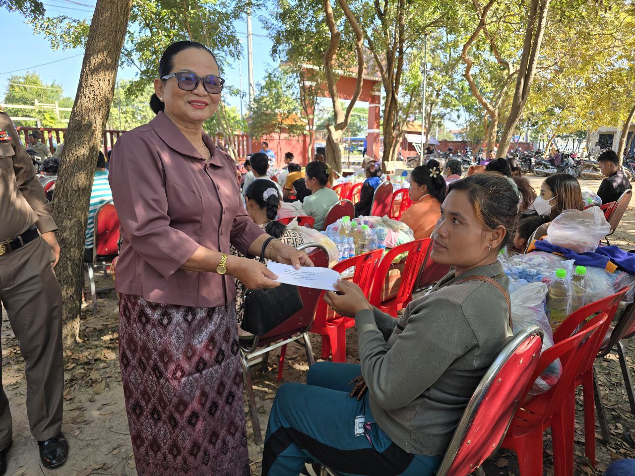 ពិធីនេះអមដំណើរដោយលោកជំទាវ សៀង លី និងលោកជំទាវ ហុក ផល្លី សមាជិកក្រុមប្រឹក្សាខេត្ត លោក អ៊ុត វណ្ណរ៉ា អភិបាលស្រុកកំពង់ស្វាយ មន្ត្រីរាជការជុំវិញស្រុកផងដែរ ។