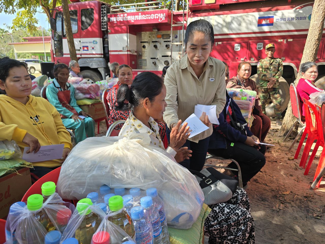 សូមបញ្ជាក់ថា គ្រួសារដែលទទួលបានការឧបត្ថមមានចំនួន១០០គ្រួសារ ដោយក្នុង១គ្រួសារៗទទួលបាន ឃីត១កញ្ចប់ និងថវិកា៥០០០០រៀល។ អត្ថបទដោយ សូរហ៊ាន សំអាង-ពិនិត្យដោយអ៊ុមញឹប។
