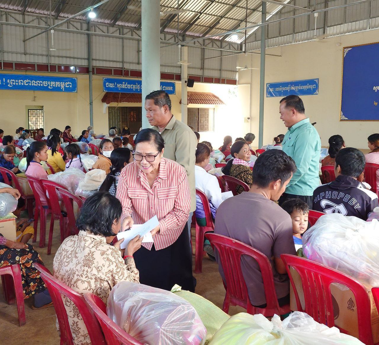សូមបញ្ជាក់ថា គ្រួសារដែលទទួលបានការឧបត្ថមមានចំនួន១០២គ្រួសារ ដោយក្នុង១គ្រួសារៗទទួលបាន និងថវិកា៥០០០០រៀល អង្ករ ៥ Kg ឃីត២ កញ្ចប់។